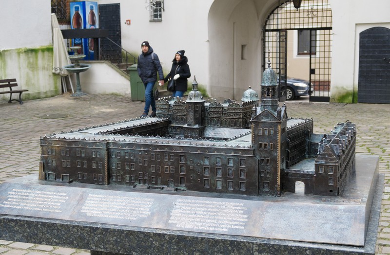 Na Dziedzińcu Menniczym Zamku Książąt Pomorskich w Szczecinie można podziwiać ten zabytek i to w całości, a także go dotknąć! Stoi już tam wykonana z brązu makieta budowli w skali 1:100.