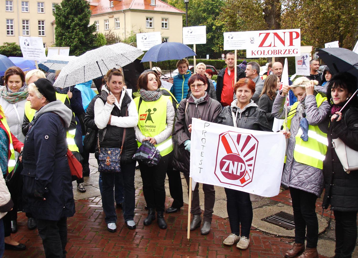Takie hasło niosło się z placu Zwycięstwa w Koszalinie, gdzie w strugach deszczu trwała poniedziałkowa (10 października) pikieta Związku Nauczycielstwa Polskiego przed miejscową delegaturą Zachodniopomorskiego Urzędu Wojewódzkiego. Przyjechały grupy z całego regionu koszalińskiego. Nierzadko w wolnym czasie od pracy i na własny koszt.