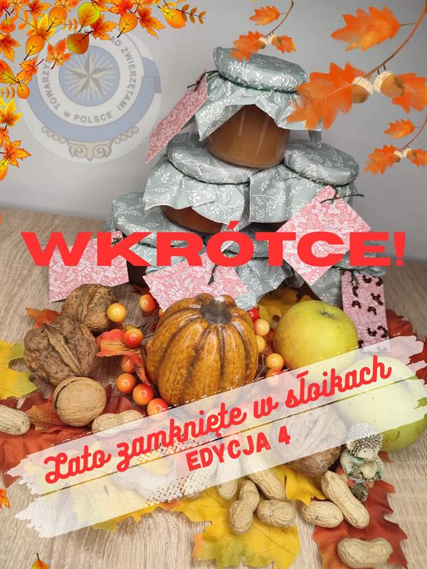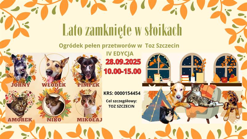 Te słoiki – ze wszystkim, co pyszne i zdrowe – jednak nie biorą się znikąd. To również dary od osób wrażliwych na potrzeby zwierząt. Każdy może wesprzeć lub wziąć udział w zbiórce słoikowych przetworów. Wystarczy, że dostarczy je – własnoręcznie wykonane przeciery, soki, kompoty czy dżemy – do siedziby TOZ przy ul. Ojca Beyzyma 17. Można je również dostarczyć do Salonu Fryzjerskiego „Amadeusz” przy ul. Witkiewicza oraz do „Przystani Piękna” (ul. Szybowcowa) w Dąbiu. Byle zdążyć na czas, czyli do 14 września.
