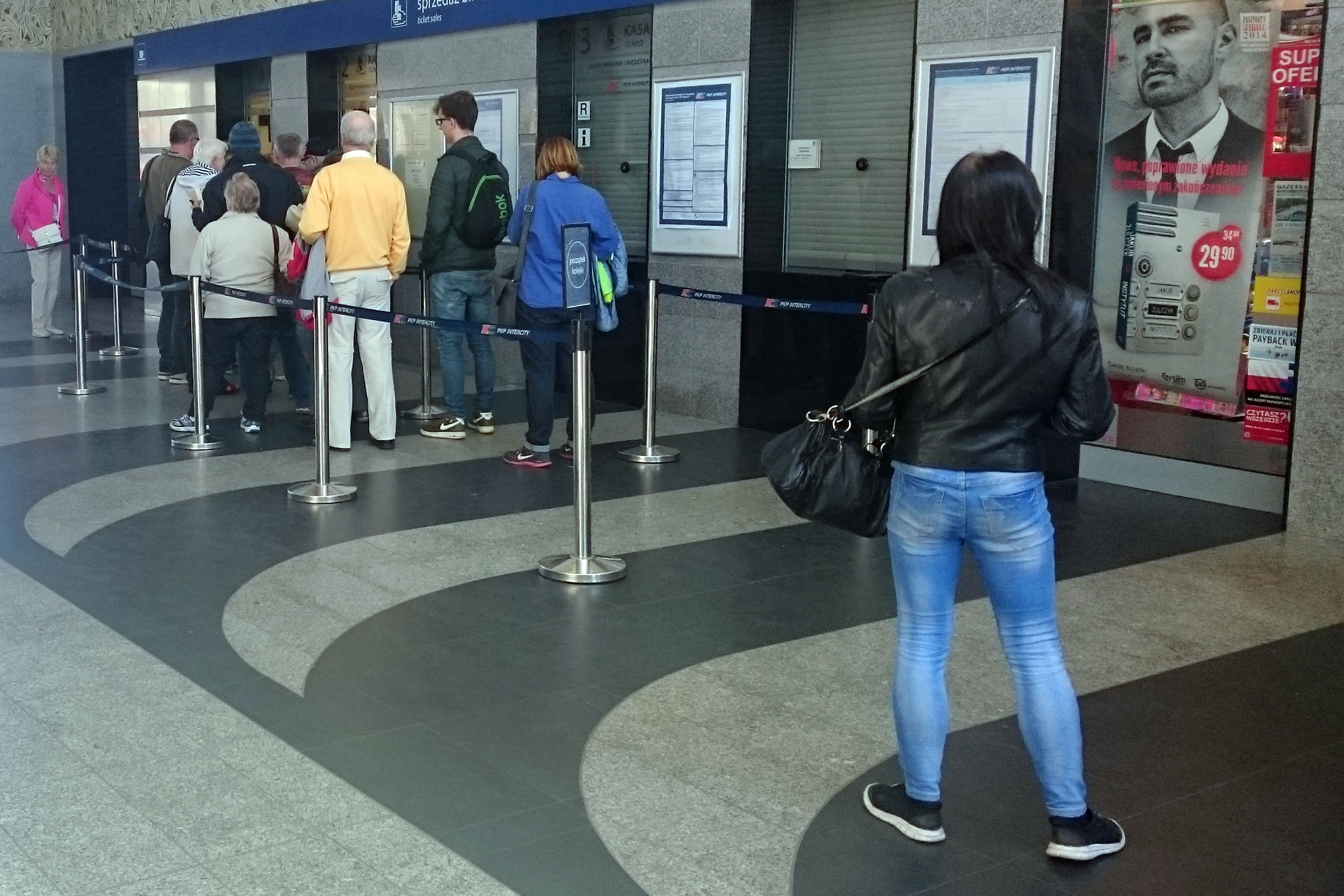 W czasie, kiedy okienka są zamknięte, tworzy się ogonek oczekujących. Kolej nie widzi jednak w takiej organizacji pracy nic złego.