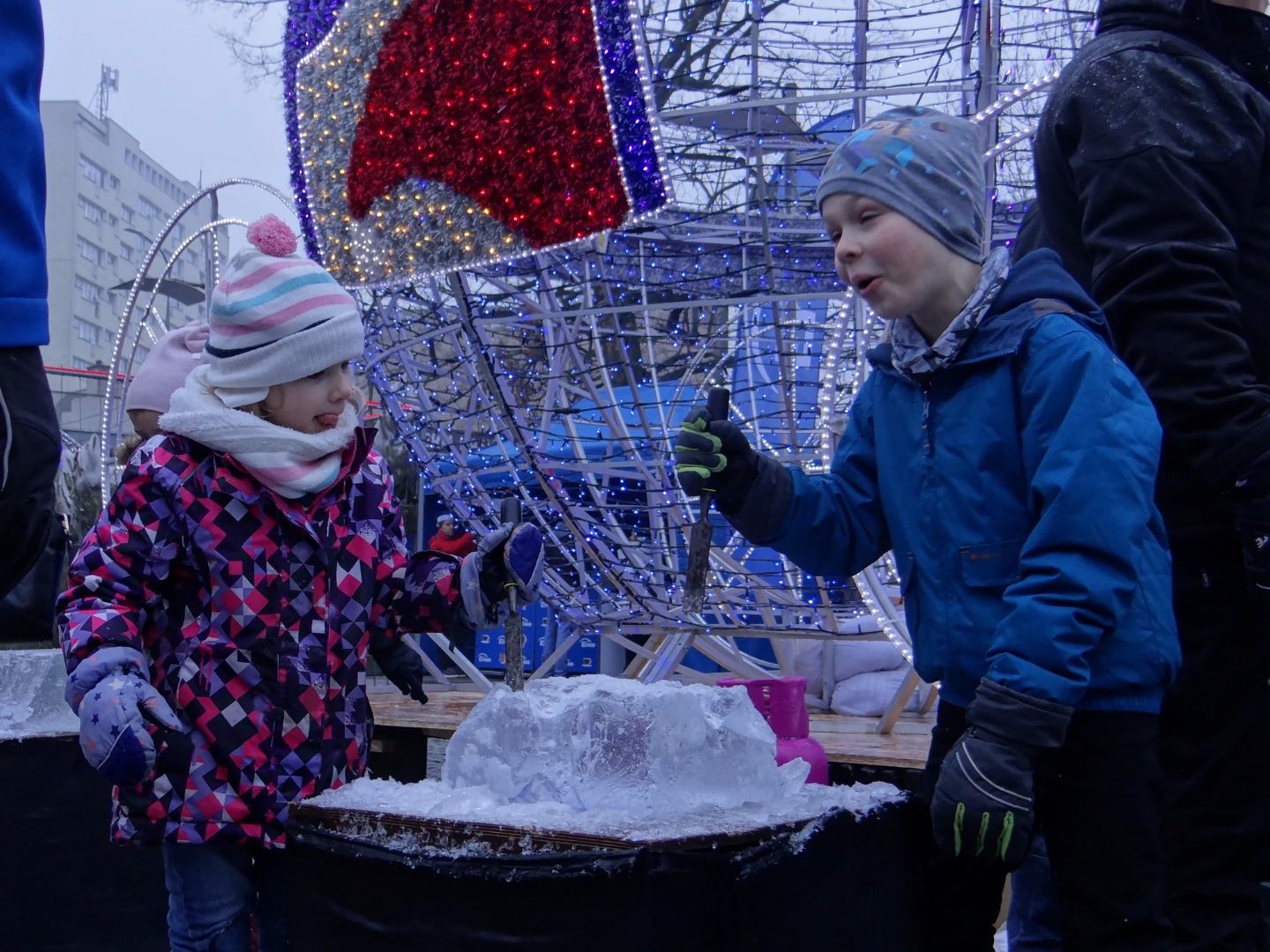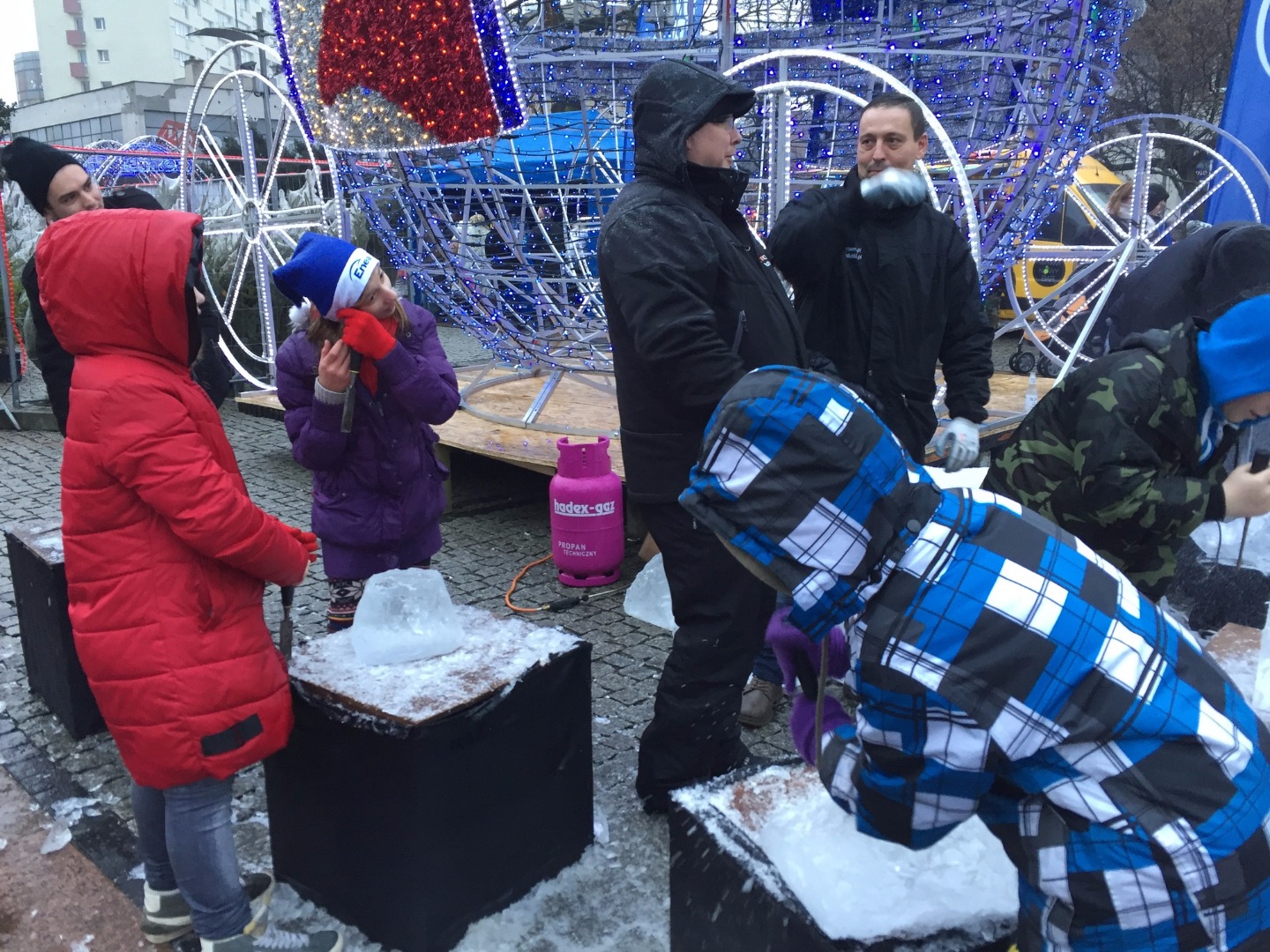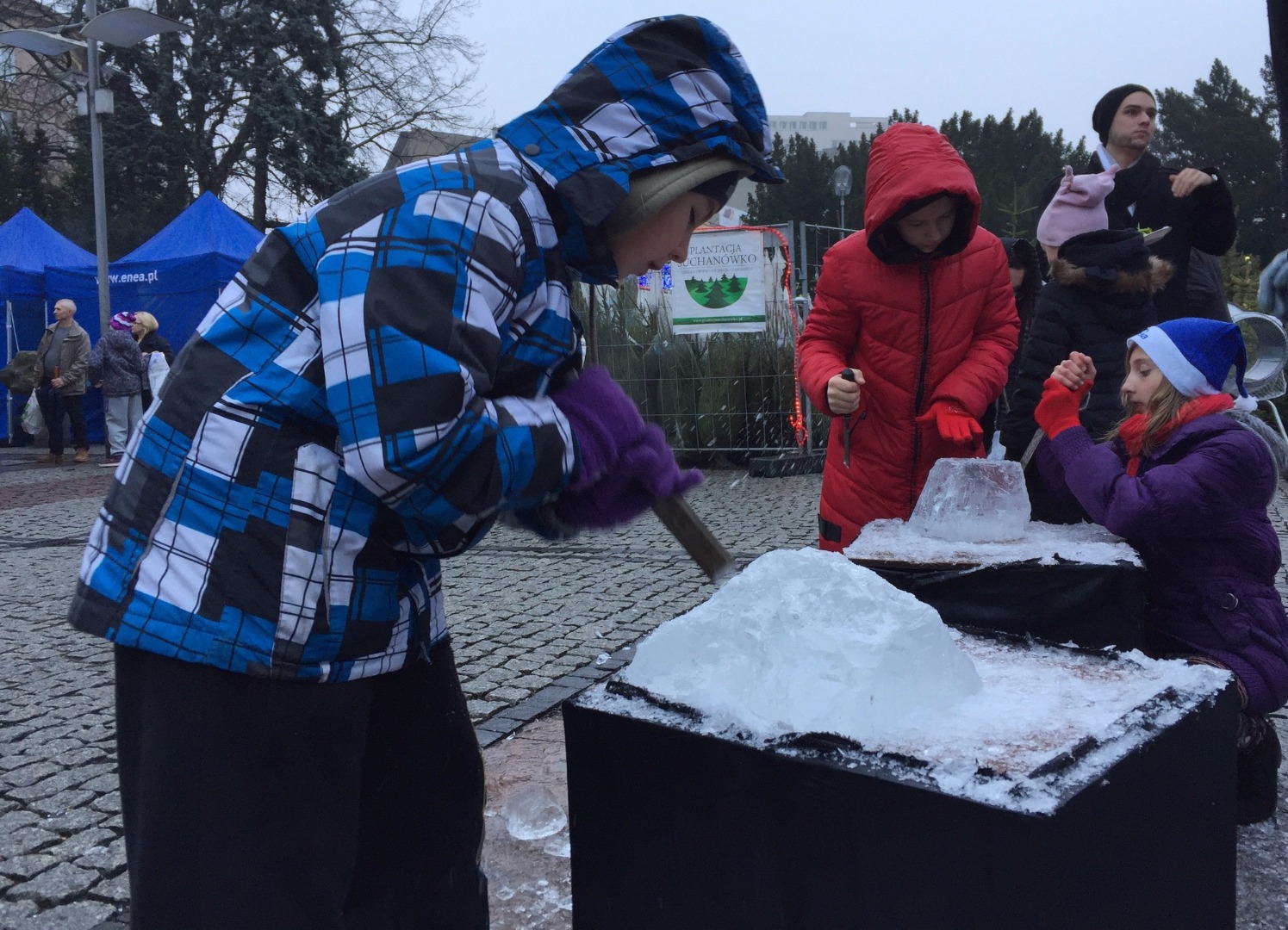 W niedzielę dużym zainteresowaniem najmłodszych cieszą się warsztaty rzeźbienia dłutem w bryłach lodu, strojenia styropianowych bombek, czy robienia ozdób świątecznych. A ich uczestnicy w przerwach mogą rozgrzać się przy rytmach energetycznej zumby pod okiem instruktorek tańca na scenie rozstawionej na pl. Lotników przy pomniku Colleoniego. To część codziennych wydarzeń jarmarkowych pod hasłem "Lśniące światełko Enei", która zadbała o uatrakcyjnienie go, rozstawiając na nim liczne kolorowe iluminacje. Spacerujący między straganami mieli też okazję posłuchać muzyki w wykonaniu artystów szczecińskiej Akademii Sztuki. ©℗