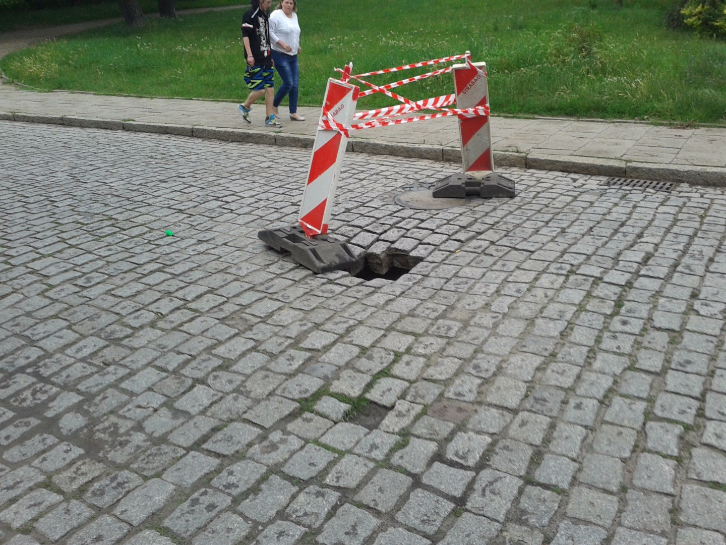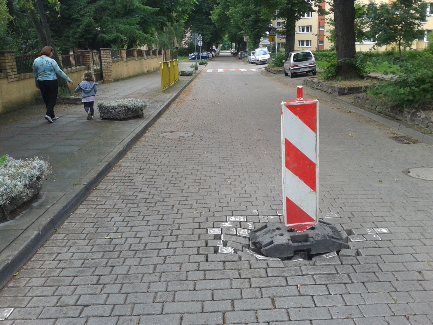 - Z tego co wiem to efekt poczynań Prosiłbym o ZWIK (zlecał wykonanie wymiany rur deszczowych) oraz ZDITM (zarządca tej drogi). Ciekawy jestem ich tłumaczenia, bo jak widać po sposobie ułożenia kostki -wersja niemiecka oraz polska sugerują, że podczas remontów na tej ulicy zagubiono znaczną część nawierzchni co ma wpływ na zapadanie się tej drogi. – Przy tej ulicy mieszkam i jak do tej pory byłem już 2 razy zalany wskutek nieudolnie wykonanych prac zlecanych przez ZWIK – dodaje pan Grzegorz.