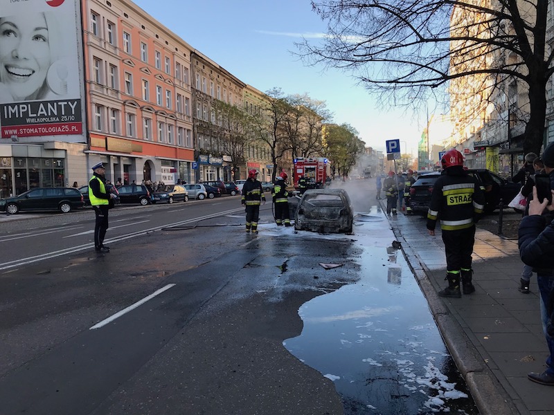 Samochód osobowy - volkswagen golf, jadący w sobotę (17 listopada) al. Wojska Polskiego w Szczecinie, zaczął nagle płonąć. Na szczęście, nikomu nic się nie stało.