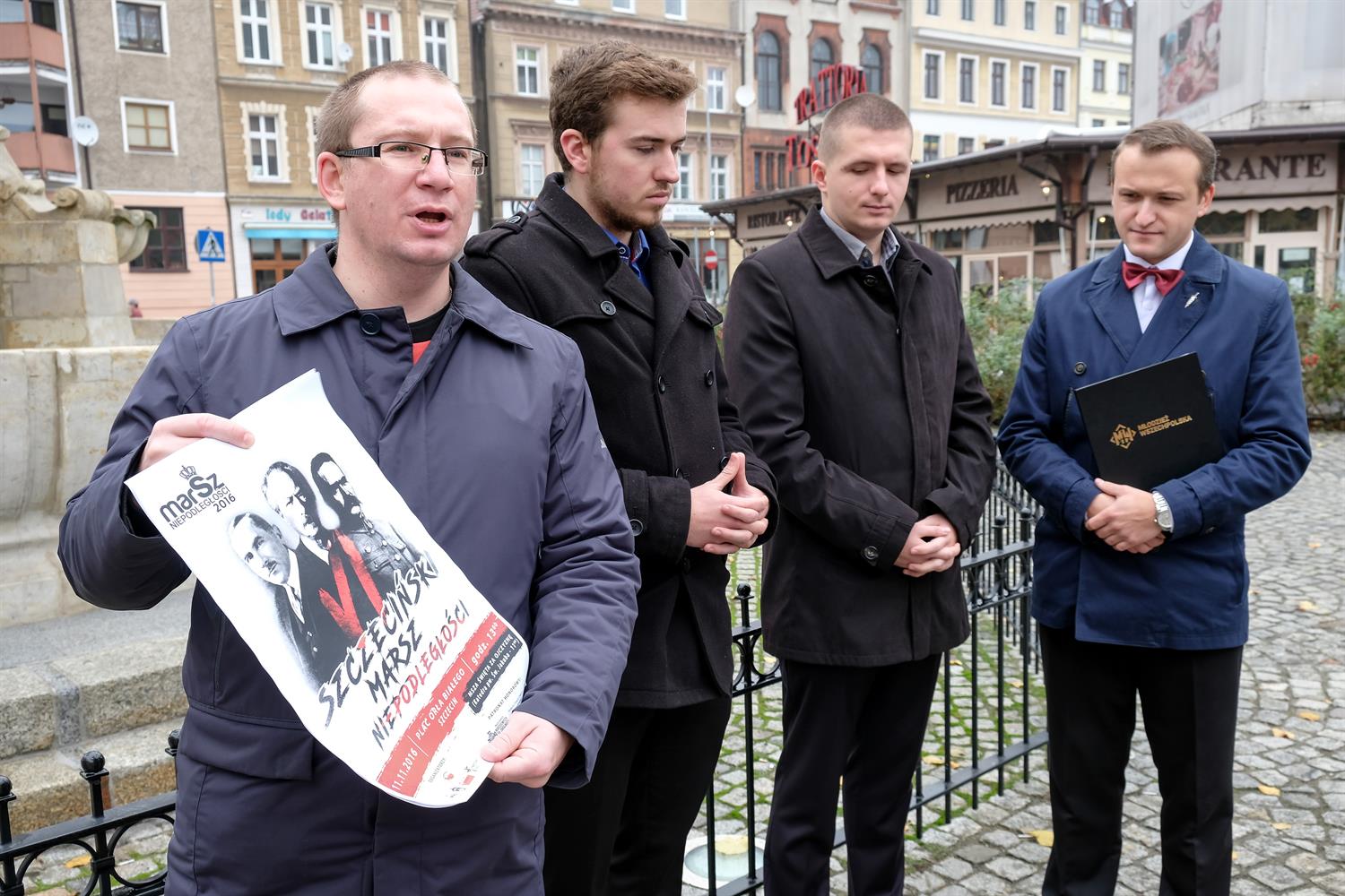 Podpis: Do udziału w Szczecińskim Marszu Niepodległości zapraszali (od lewej): Bartłomiej Ilcewicz, Marek Zakrzewski, Tomasz Dorosz oraz Krzysztof Rudzki.