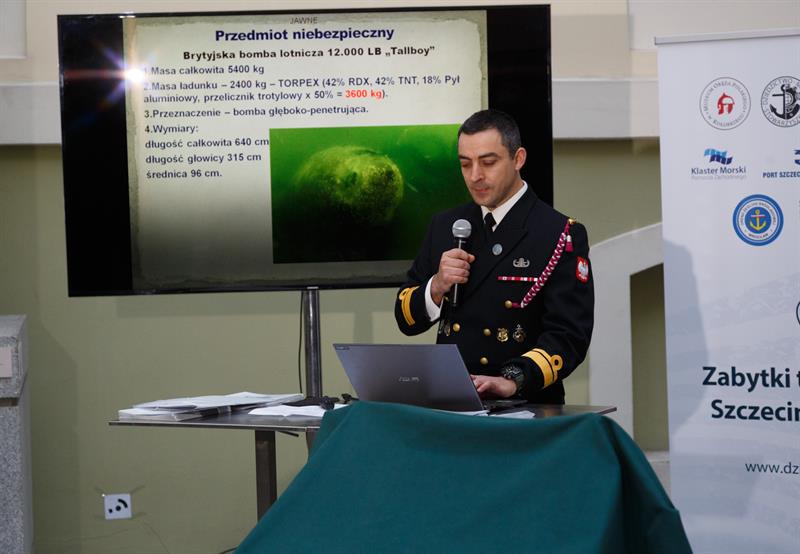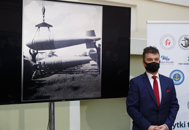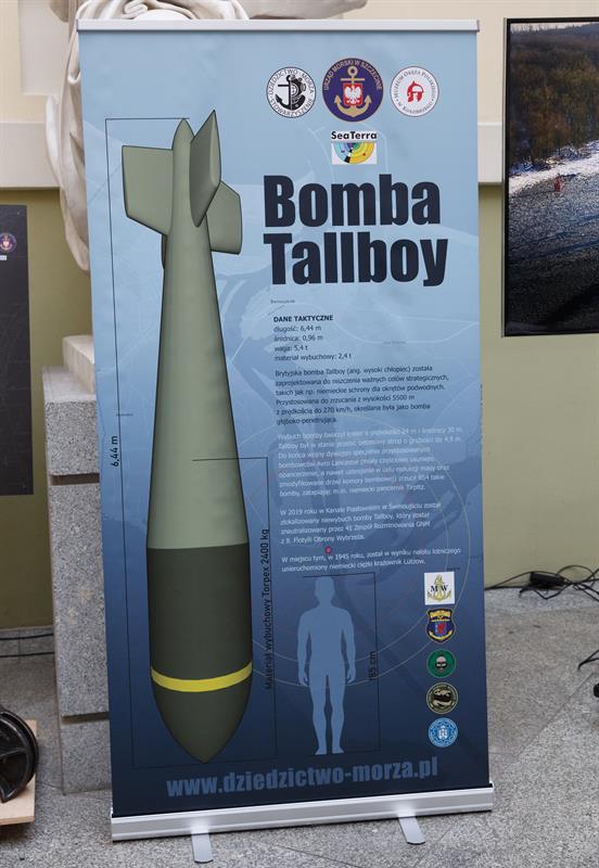 Pozostałości po detonacji bomby lotniczej Tallboy zaprezentowano we wtorek (21 grudnia) na dziedzińcu Muzeum Narodowego w Szczecinie przy ul. Staromłyńskiej. Przypomnijmy, że wydobyto ją z dna Kanału Piastowskiego i zdetonowano w październiku 2020 roku. Gośćmi specjalnymi wydarzenia byli specjaliści 41 Zespołu Rozminowania GNM z 8. Flotylli Obrony Wybrzeża, którzy zneutralizowali ten największy w Polsce niewybuch. Pozostałości bomby Tallboy stanowią teraz część wystawy „Zabytki toru wodnego Szczecin-Świnoujście”, którą można zobaczyć w muzeum do końca grudnia 2021 roku.