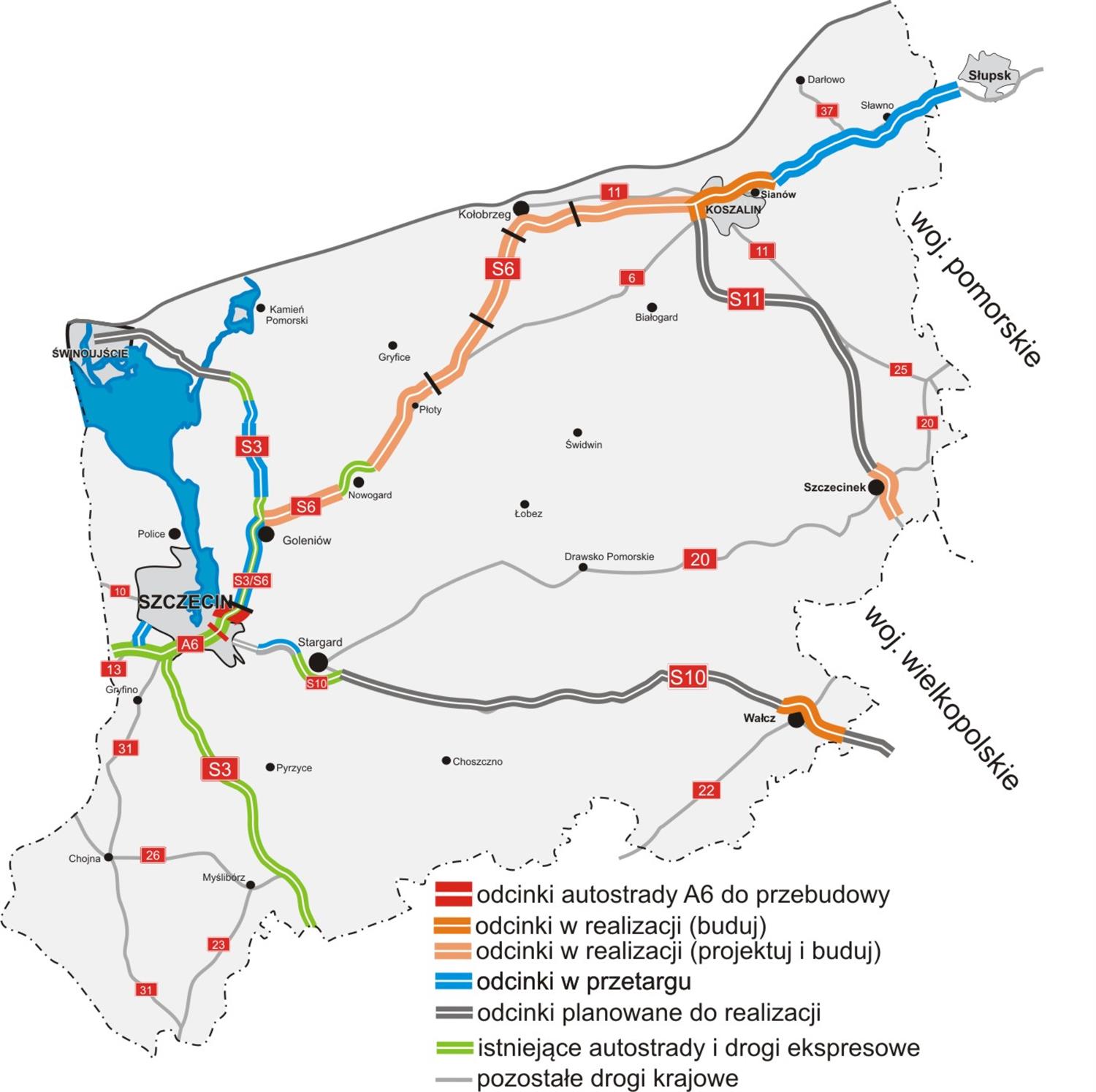 - Prowadzone przetargi obejmują przebudowę ostatnich brakujących fragmentów tej trasy – odcinka od węzła Szczecin Dąbie do węzła Rzęśnica o dł. 3,5 km (obecnie oznaczonego jako droga ekspresowa) i węzła Szczecin Kijewo. W ramach prac znajdującą się w złym stanie poniemiecką nawierzchnię z płyt betonowych zastąpi nowa nawierzchnia bitumiczna - opisuje arterię rzecznik Dyrekcji.
