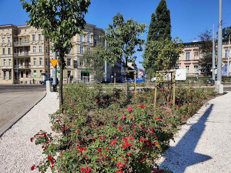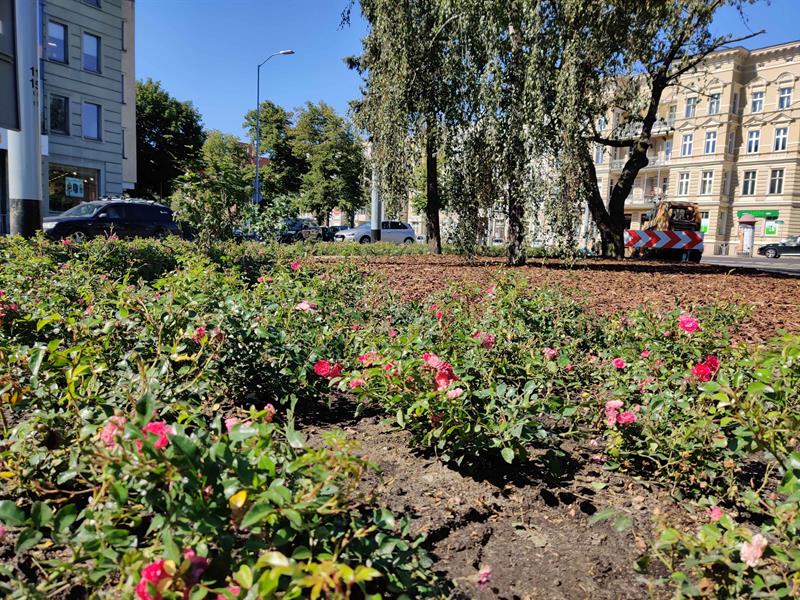 Zazielenia się jedna z głównych szczecińskich "wysp ciepła", czyli pl. Szarych Szeregów. Asfaltowo-betonową architekturę przełamują nasadzenia róż, lawendy i magnolii.