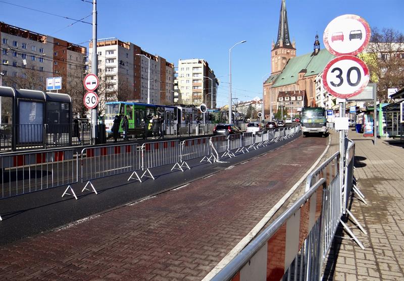 Prace brukarskie, zlecone w ramach bieżącego utrzymania przez ZDiTM, oznaczają, że teraz dla autobusów wszystkich linii zwykłych i nocnych, tj. 52, 62, 70, 75, 76, 521, 527 i 528, przystankiem zastępczym jest ten w pasie nowego torowiska, przy którym zatrzymują się tramwaje linii 2, 7 i 8 oraz od niedawna ponownie także autobusy wszystkich linii pośpiesznych A, B, C, G i H.