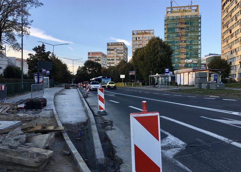 Trzeci już tydzień trwają prace przy wymianie podbudowy pierwszej z zatok autobusowych na przystanku „Zawadzkiego kościół” oraz fragmentu chodnika w tym rejonie. W związku z tym pasażerowie korzystają teraz z przystanku tymczasowego w kierunku zajezdni, odsuniętego o ok. 50 m w stronę osiedla. Po zakończeniu roboty będą prowadzone także na przystanku naprzeciwko w kierunku do ronda Szczecińskich Olimpijczyków. Według zapowiedzi przedstawicieli ZDiTM zakładany był miesięczny termin wykonania tych prac, czyli do 20 października. Zanosi się jednak na to, że lifting przystankowo-chodnikowy zajmie nieco więcej czasu niż planowano.