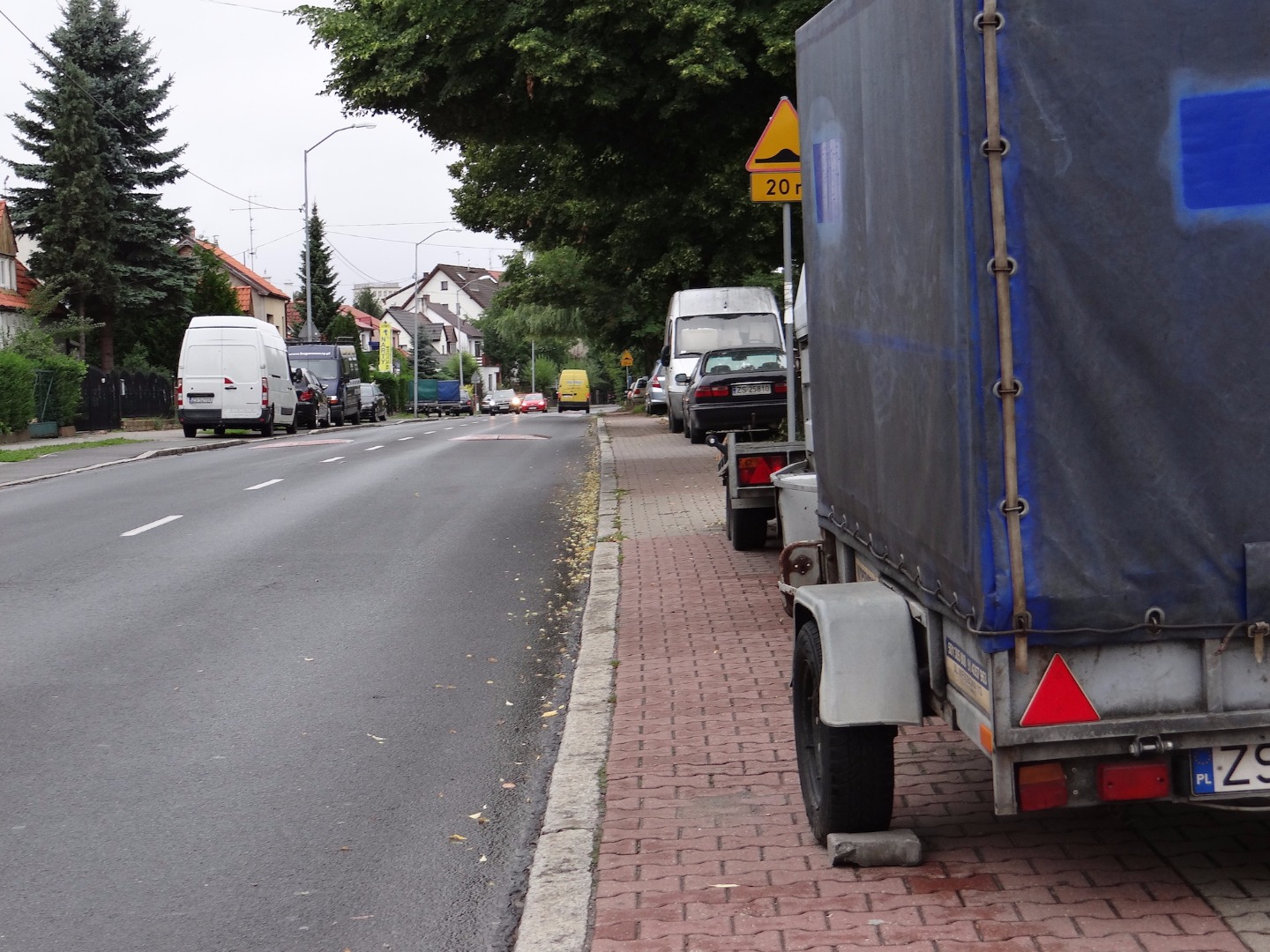 Zaparkować można wszędzie przyczepę, a nawet ze trzy. Na przykład na ścieżce rowerowej. Grunt, by mieć na nie widok z okna. Co tam inni uczestnicy ruchu, jak ci, którzy preferują jazdę na dwóch kółkach. tarasują więc pas ścieżki rowerowej wzdłuż ulic Wierzbowej i Dworskiej także właśnie wehikuły, jak te, samochody osobowe, dostawcze, terenówki. Co na to służby porządkowe? Ano - jak widać - nic. Bo ich - jak zwykle - tam, gdzie być powinny, to ich nie ma. ©℗