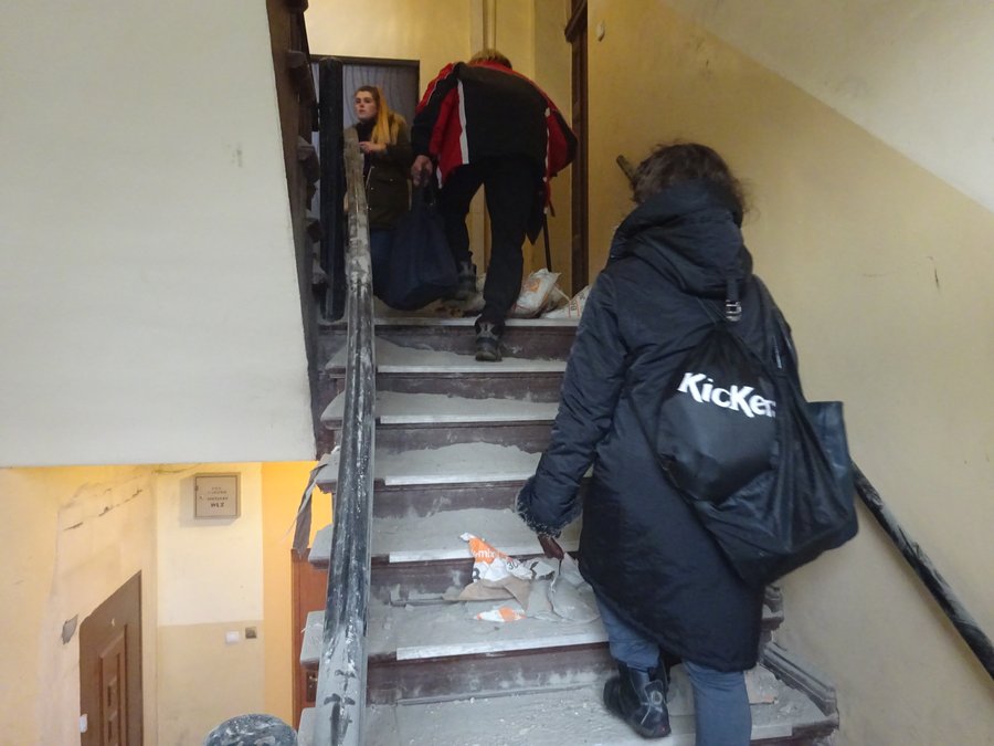 Inny z lokatorów kamienicy twierdzi, że zawalisko to efekt przedłużającego się remontu dachu.