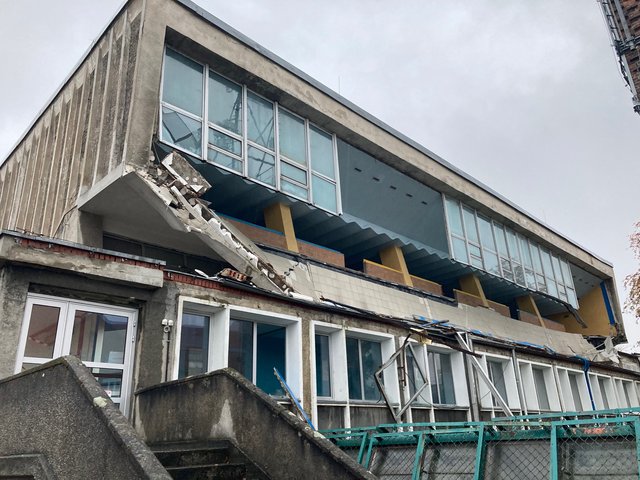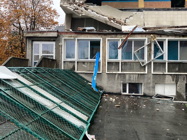 Według przekazywanych informacji zawaliła się zewnętrzna część balkonu w części basenowej. Na stronie SDS jest komunikat, że od 30. października br. basen 25 m został czasowo wyłączony z eksploatacji.