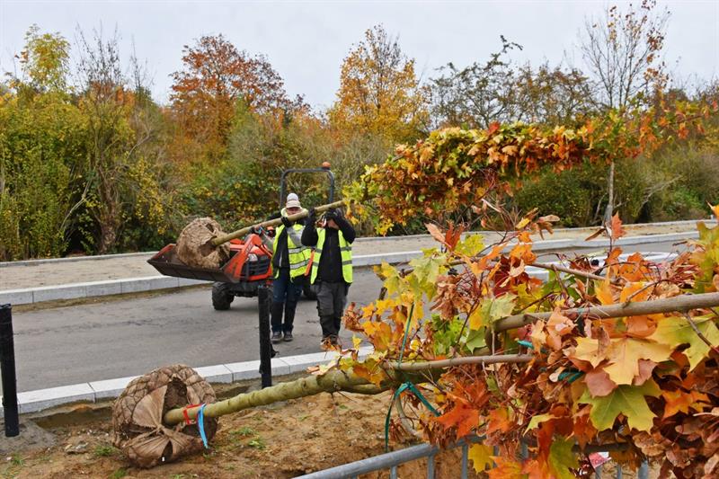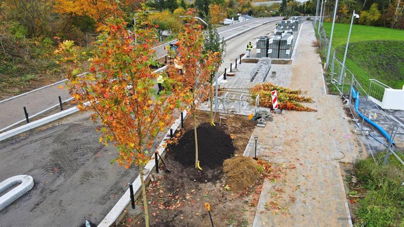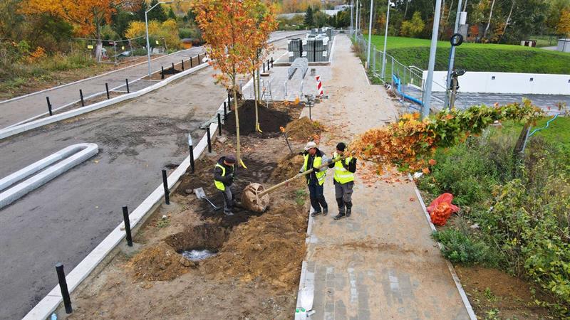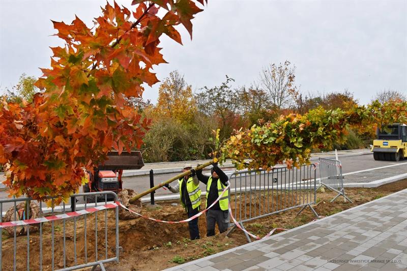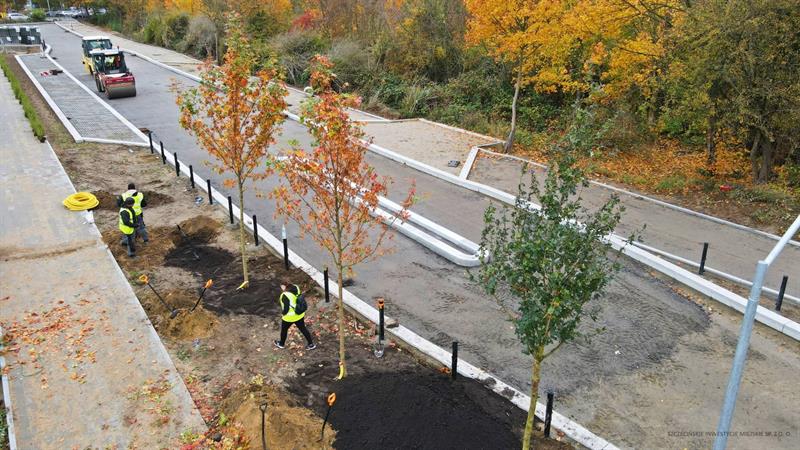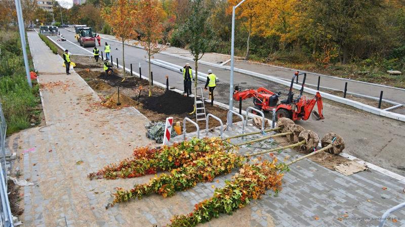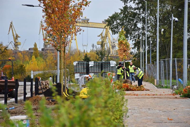 Na przebudowywanej ulicy Bożeny w Szczecinie, przy powstającym aquaparku Fabryka Wody, trwa nasadzanie zieleni. Znajdzie się tam 75 drzew oraz ponad 4 tys. sztuk krzewów.