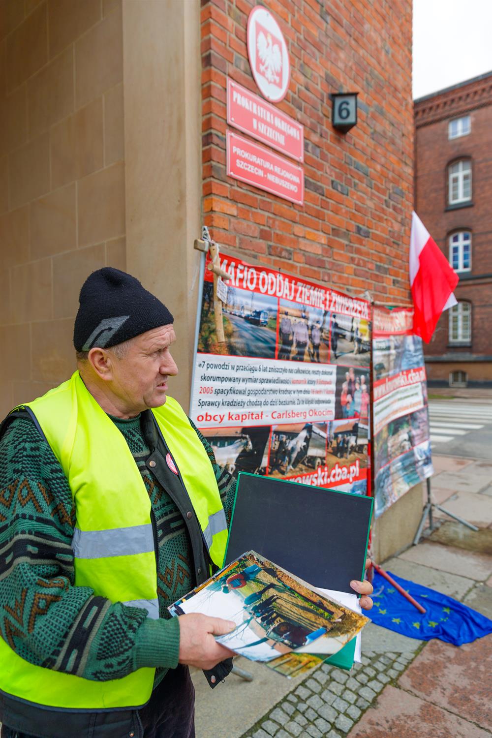 Szczecin jest drugim miastem na trasie pikiet 63-letniego rolnika z Małopolski. W poniedziałek (20 marca) protestował przed Prokuraturą Regionalną w Poznaniu, 28 marca będzie w Rzeszowie.