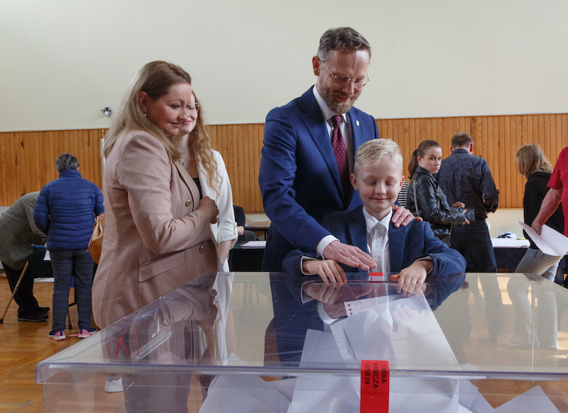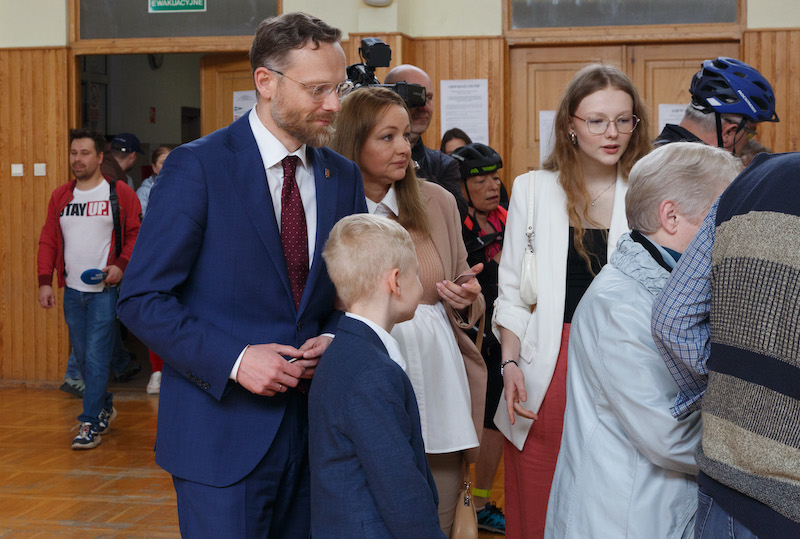 Poseł i były wojewoda zachodniopomorski Zbigniew Bogucki, kandydujący na stanowisko prezydenta Szczecina jako przedstawiciel Prawa i Sprawiedliwości, głosował w niedzielę po południu w Szkole Podstawowej nr 35 przy ul. Świętoborzyców. Nie był sam. Wspierała go żona i dwoje dzieci.