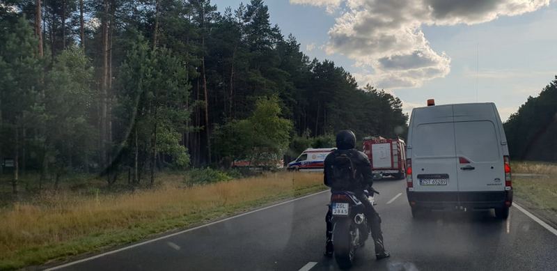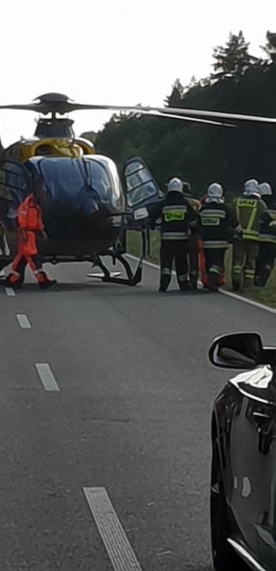 Z powierzchownym urazem kręgosłupa mężczyzna został przetransportowany śmigłowcem do szpitala. Jego życiu nie zagraża niebezpieczeństwo. Nie powinno być już utrudnień w ruchu.