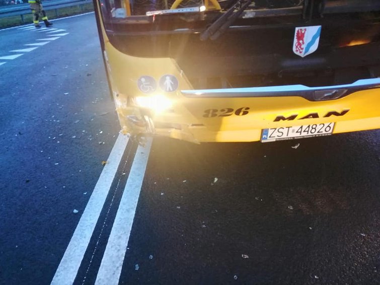 - Zadysponowano nas do wypadku drogowego na węźle Motaniec - informuje OSP Bielkowo. - Autobus Miejskiego Przedsiębiorstwa Komunikacji w Stargardzie zderzył się z samochodem osobowym. W autobusie nie było pasażerów.