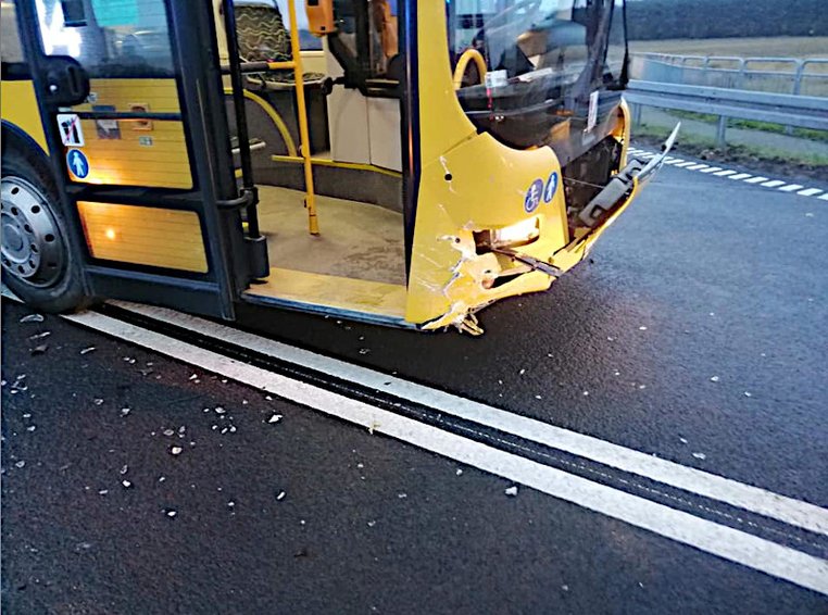We wtorek rano na węźle Motaniec doszło do kolizji. Autobus zderzył się tam z samochodem osobowym.