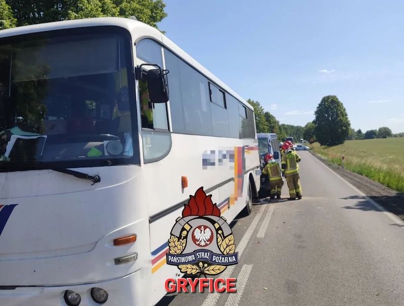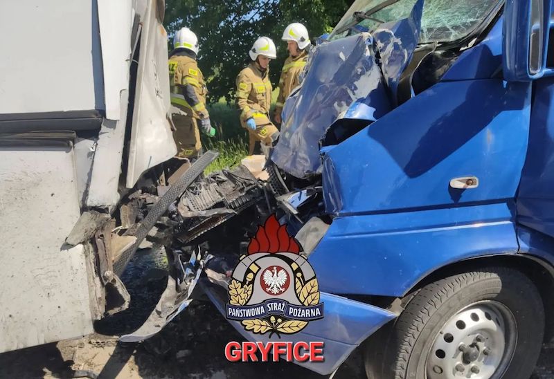Na miejscu interweniowała policja, pogotowie ratunkowe i straż pożarna. Po wypadku droga była zablokowana.