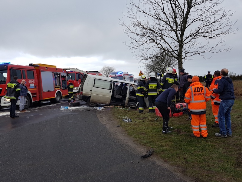 – W wypadku uczestniczyło łącznie 9 osób, siedem z nich podróżowało busem – mówi kpt. Krzysztof Azierski, rzecznik prasowy Komendanta Powiatowego Państwowej Straży Pożarnej w Kołobrzegu. – W wypadku zostało poszkodowanych sześć osób, w tym trzy osoby odniosły ciężkie obrażenia.