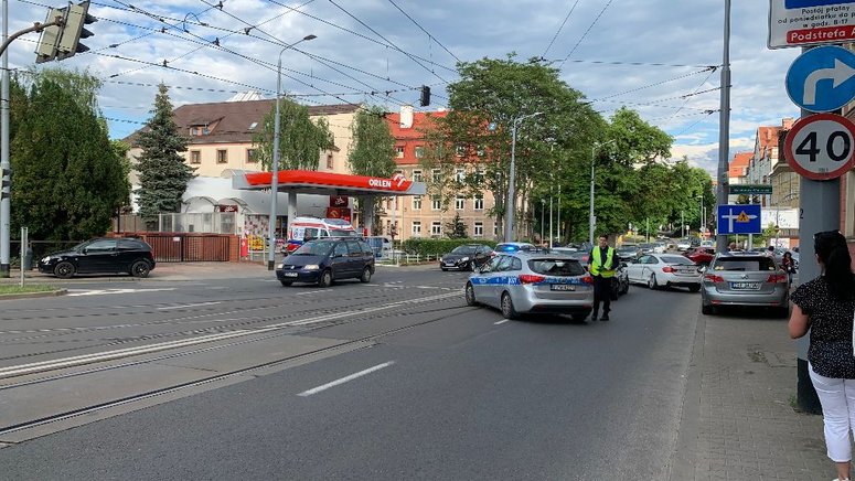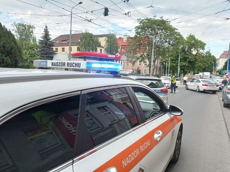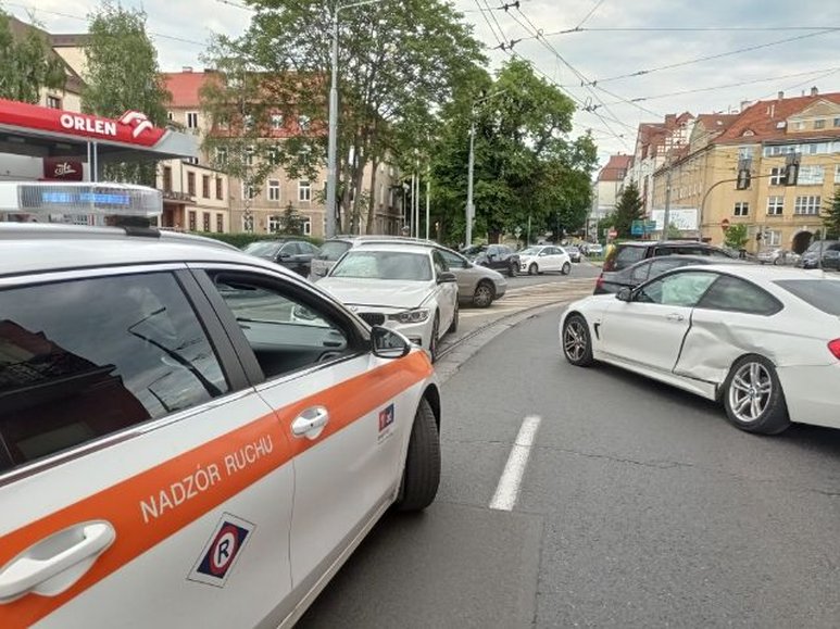 Na miejscu policja ustala okoliczności kraksy, do której doszło przed godz. 18, a ZDiTM kieruje tam ruchem.