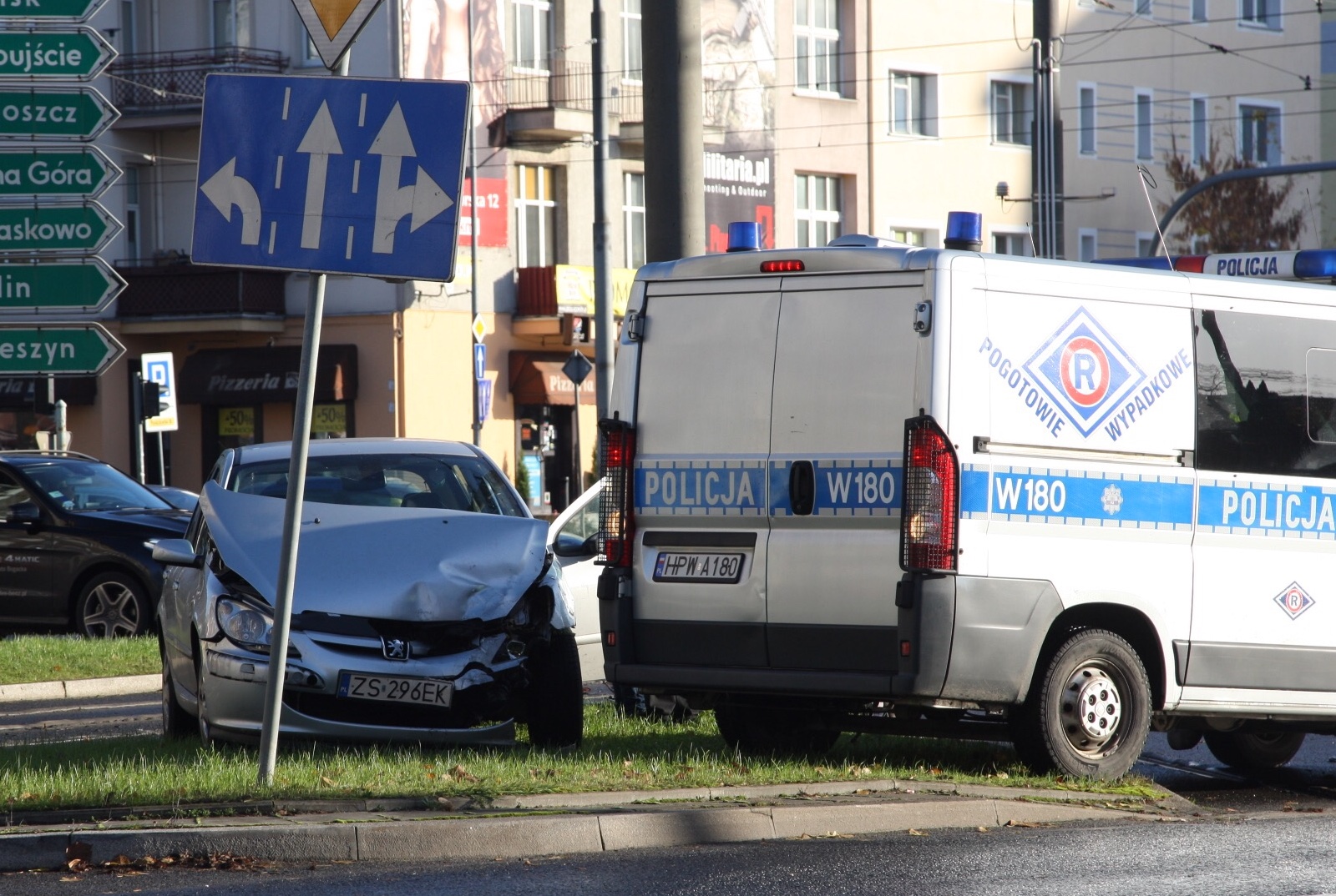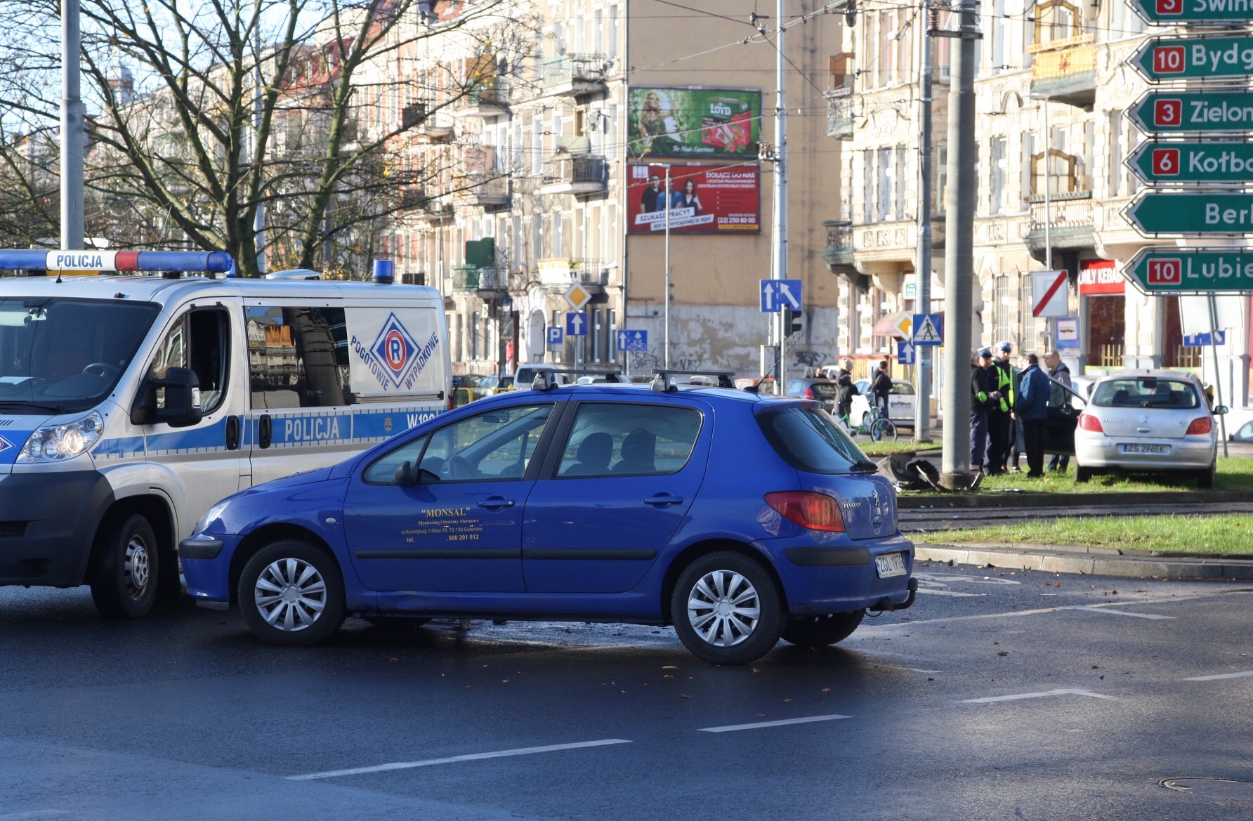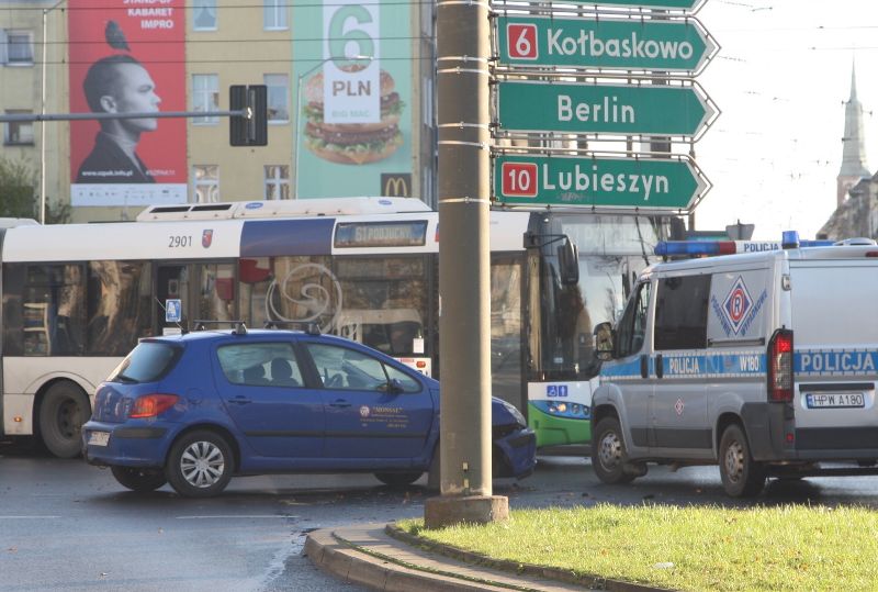 Dwa samochody osobowe (dwa peugeoty) zderzyły się przed godz. 10 na pl. Kościuszki w Szczecinie. Nikomu nic się nie stało. Niestety unieruchomione przez stłuczkę auta zablokowały torowisko - przez prawie godzinę na Bramę Portową tramwaje jeździły objazdem.