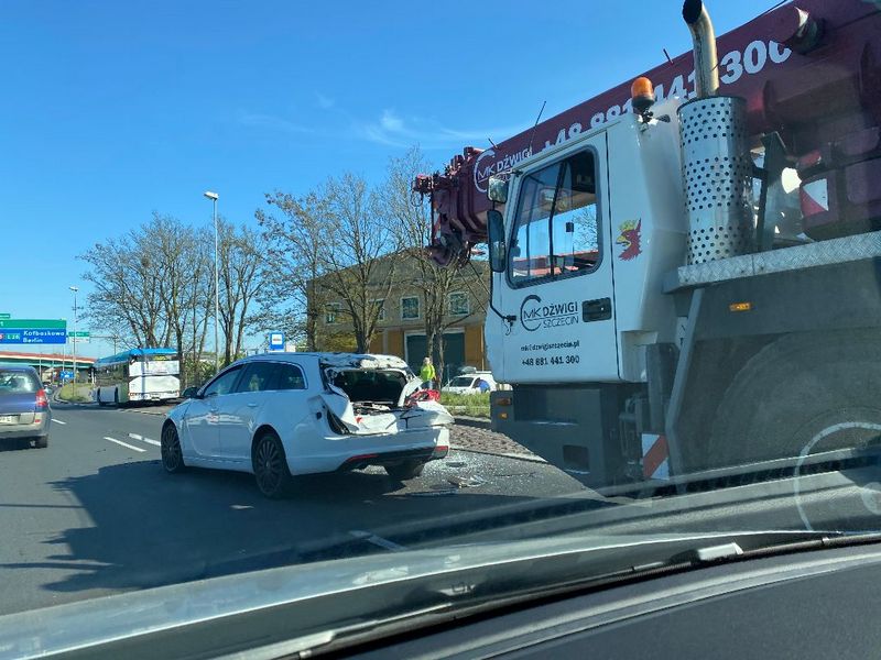 W okolicy przystanku Hangarowa w Szczecinie doszło do kolizji. Zderzył się dźwig z samochodem i z autobusem pospiesznym A. Zablokowany jest jeden pas jezdni w kierunku prawobrzeża. Na miejscu było pogotowie ratunkowe, cały czas pracują tam policjanci.