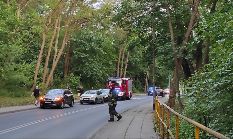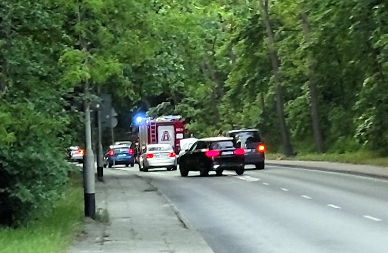 Na miejscu interweniuje policja i straż pożarna. Ruch odbywa się jednym pasem jezdni.