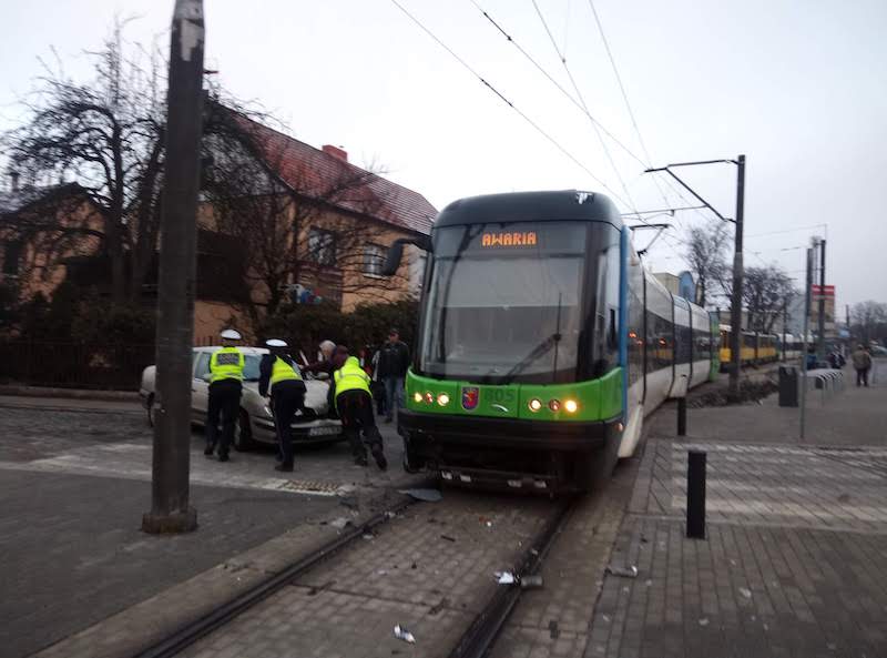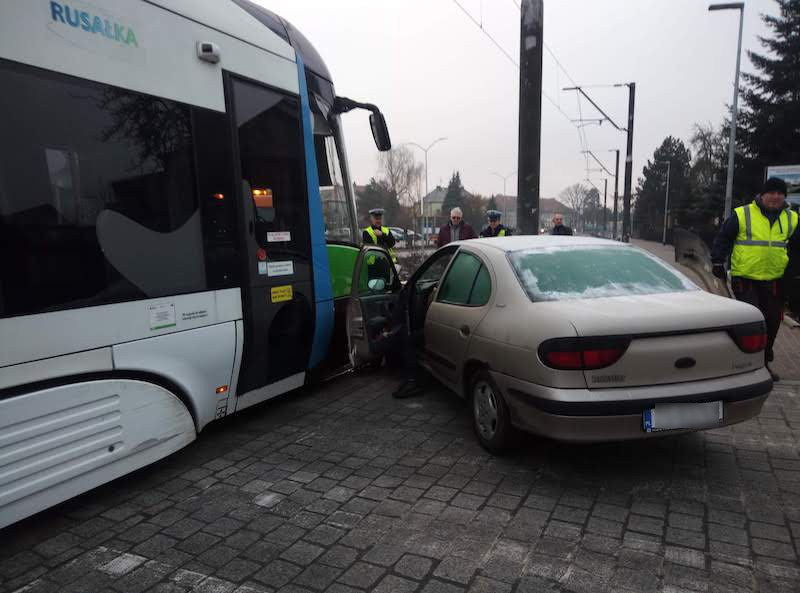 Kierowca Renault, wyjeżdżając z ul. Brodnickiej nie zachował ostrożności i wjechał pod tramwaj.
