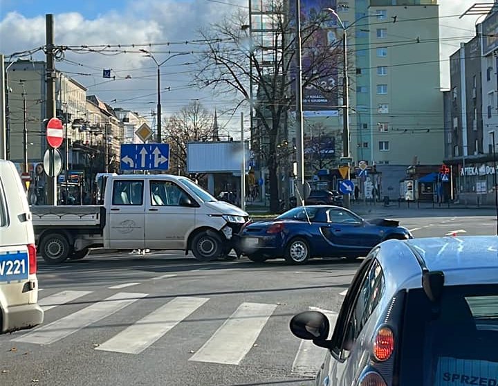 Nie ma informacji o poszkodowanych. Na miejscu interweniuje policja. Są problemy w przejeździe przez plac Kościuszki.