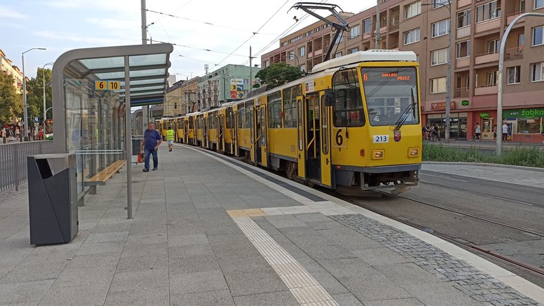 Tramwaje linii 6 z pl. Rodła przez jakiś czas będą kursowały przez ul. Piłsudskiego, ul. Jagiellońską i Wawrzyniaka i ponownie Piłsudskiego w stronę Gocławia.