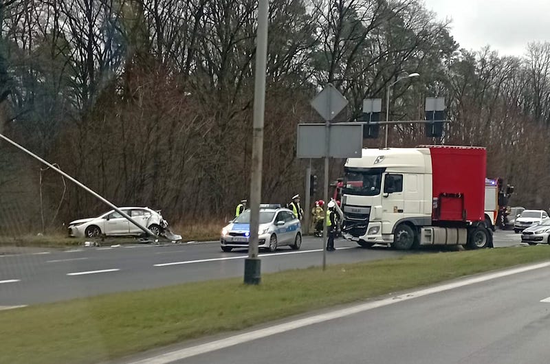 Nie ma już utrudnień w przejeździe ulicą Szosa Stargardzka w Szczecinie po wypadku, do którego doszło w czwartek przed południem.
