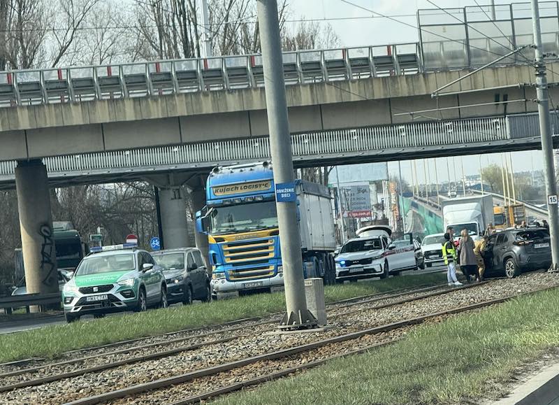Biorący udział w zderzeniu samochód wjechał na torowisko tramwajowe, ale dość szybko udało się je odblokować.