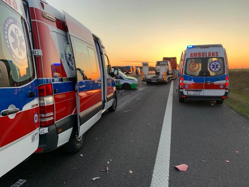 Do wypadku doszło na prostym odcinku drogi przy dobrej widoczności. W jego wyniku osiem osób zostało rannych. Na miejscu interweniują służby. Doszło do rozlania się oleju na powierzchnię drogi.