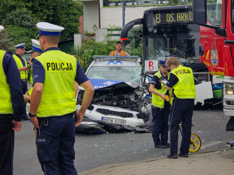 Wciąż czekamy na informacje o stanie poszkodowanych. Natomiast już znamy okoliczności, w jakich doszło do wypadku. Radiowóz wbił się w autobus linii nr B w trakcie pościgu za samochodem osobowym.