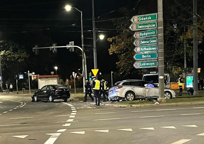 Do zderzenia dwóch samochodów osobowych doszło w nocy z czwartku na piątek na placu Kościuszki w Szczecinie.