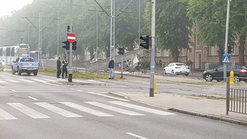 Nikt nie odniósł obrażeń, ale zniszczona została wiata przystanku autobusowego i zablokowane było torowisko tramwajowe. Tramwaje linii nr 5 i 7 kursowały objazdem, lecz obecnie wróciły już na swoją stałą trasę. Utrudniony był też przejazd przez skrzyżowanie ul. Mickiewicza i Poniatowskiego. (ip)