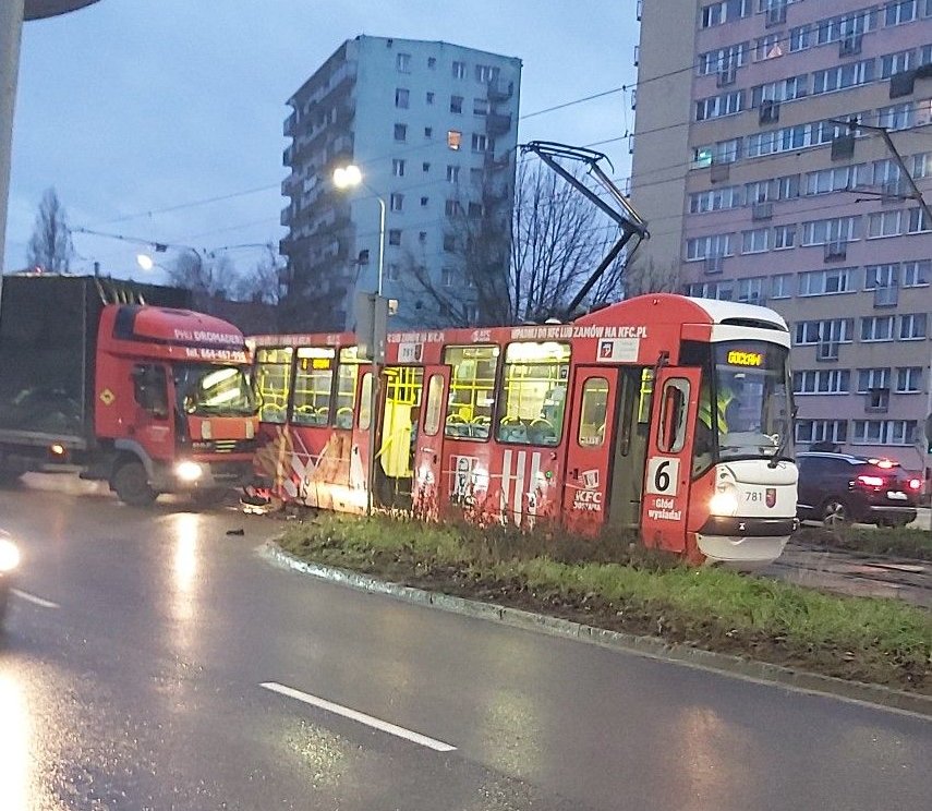 Za przystankiem Dubois ciężarówka wjechała w bok jadącego na wprost ul. Firlika tramwaju. Na szczęście nikt nie odniósł obrażeń.