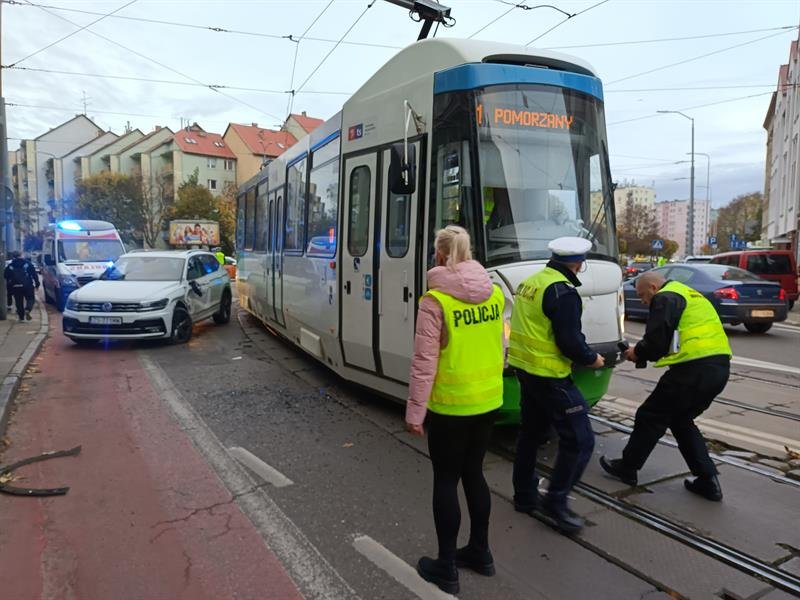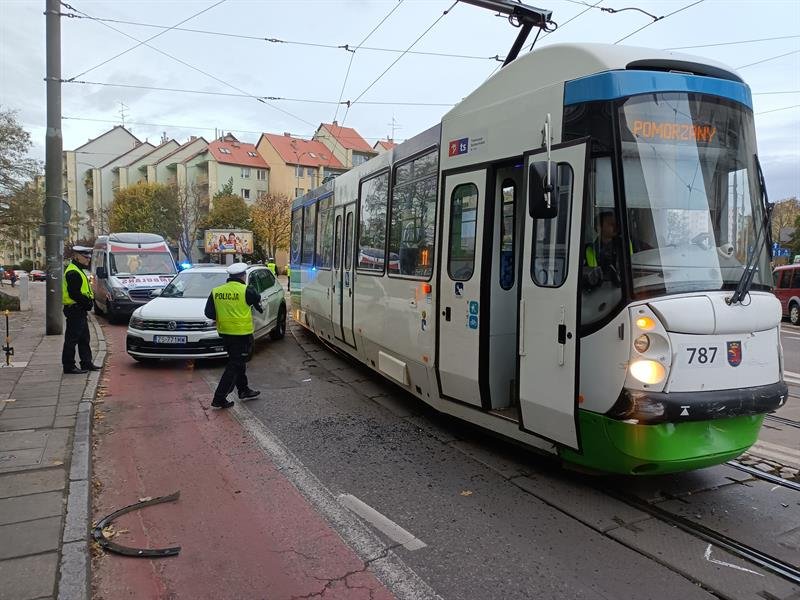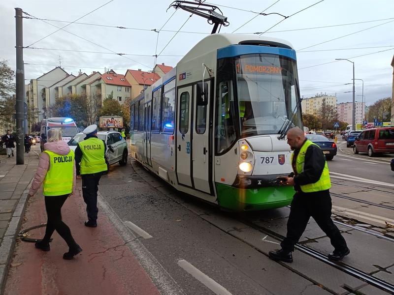 Do zderzenia tramwaju i czterech samochodów osobowych doszło w poniedziałek tuż po godz. 15 na ul. Parkowej w Szczecinie w rejonie skrzyżowania z ul. Dubois.