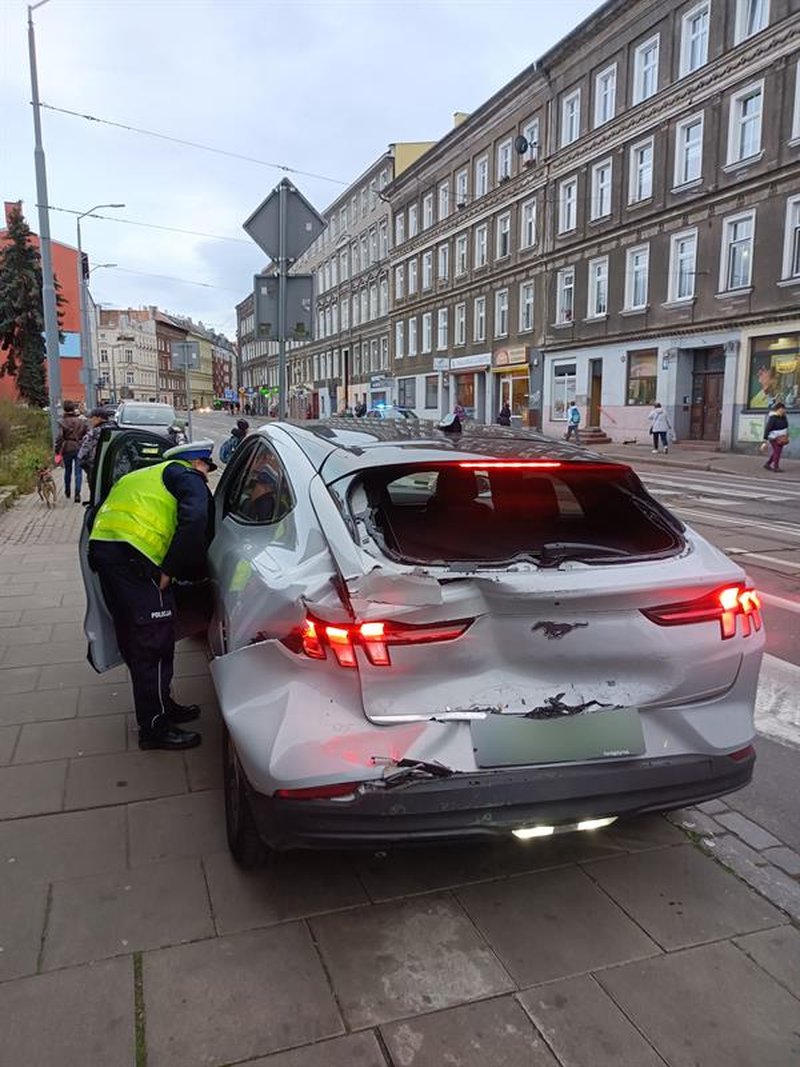 Zderzenie tramwaju z czterema samochodami osobowymi na ul. Parkowej