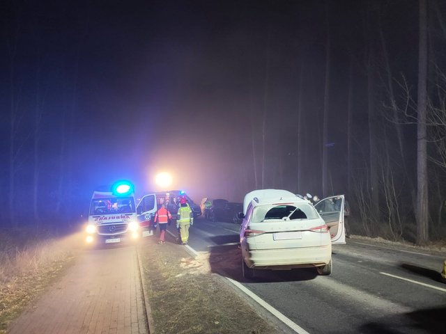 Droga w miejscu wypadku jest zablokowana. Na miejscu interweniują załogi pogotowia ratunkowego i policja. Przy usuwaniu skutków zderzenia pracują strażacy z Polic.