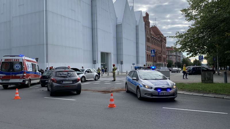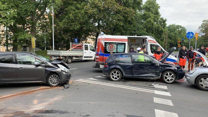 Trzy samochody osobowe zderzyły się w czwartek rano na skrzyżowaniu ulicy Małopolskiej i Matejki tuż obok gmachu filharmonii szczecińskiej.