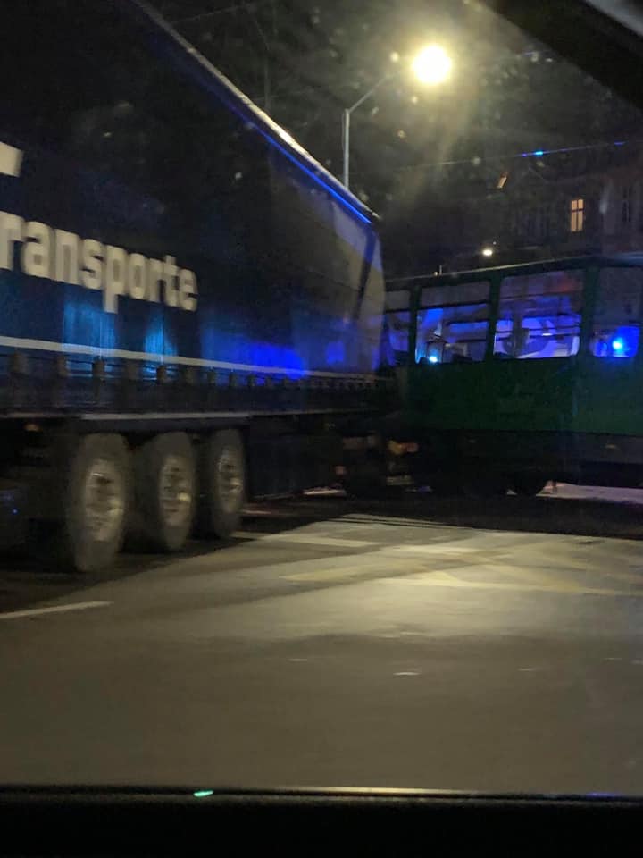 Motorniczy był ślepy i nie widział, że na torowisku jest ciężarówka.