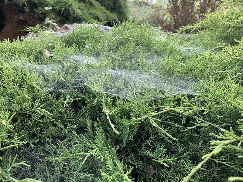 U nas w ogródku pełno jest takich na krzewach i nikomu to nie przeszkadza. Mniej much, a poranny widok, gdy osadzona rosa mieni się w promieniach Słońca jest bezcenny.