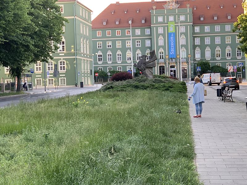 Mowa o pasie zieleni w al. Papieża Jana Pawła II. To na nim od lat pojawiały się efektownie kwiatowe kobierce. W tym roku razem miał być utkany z płatków petunii i żeniszków, ozdobnych traw (ostnica) oraz bordowych irezyn, układających się w napis: "Kocham Szczecin". Tymczasem jest - co widać.