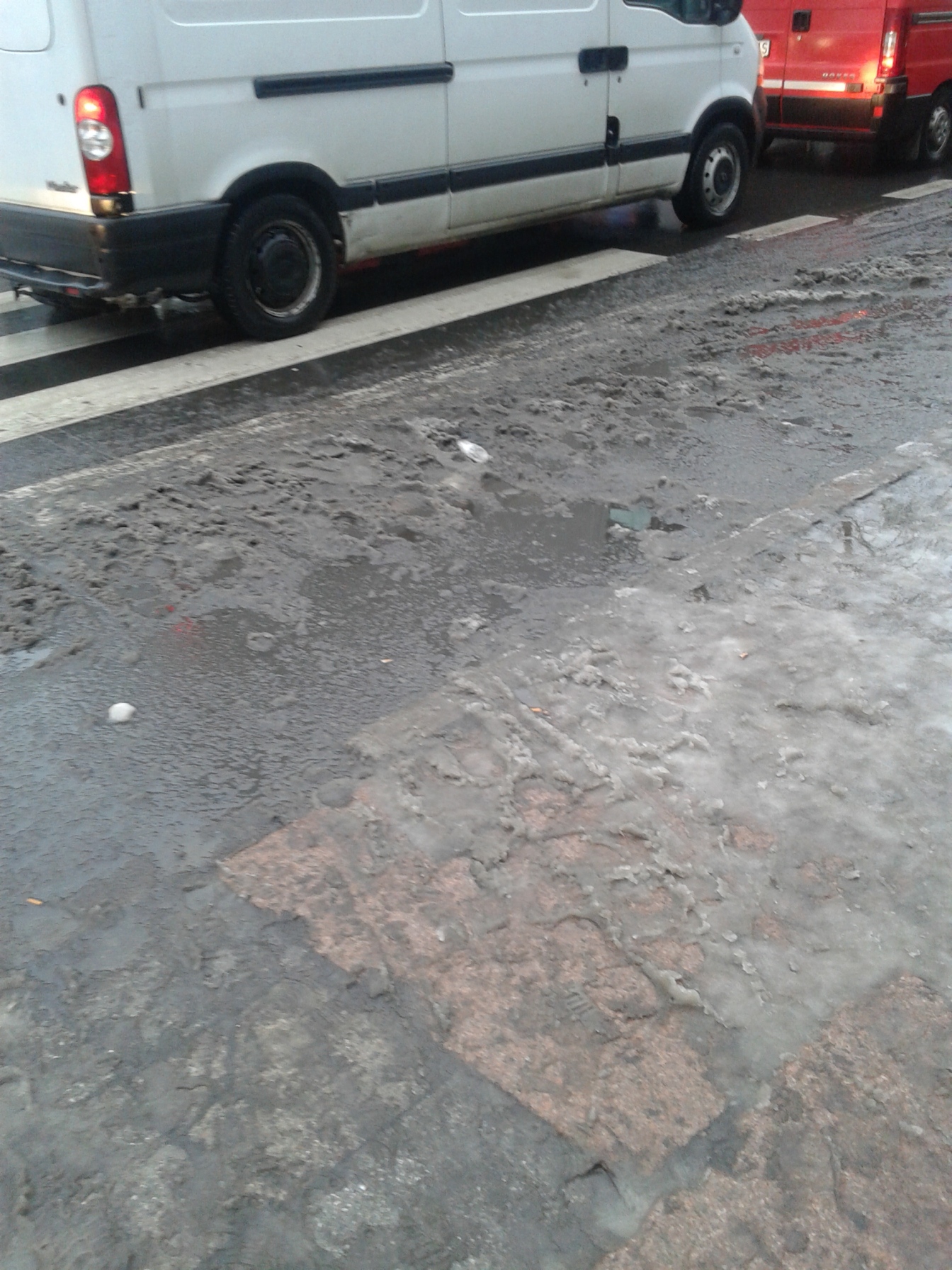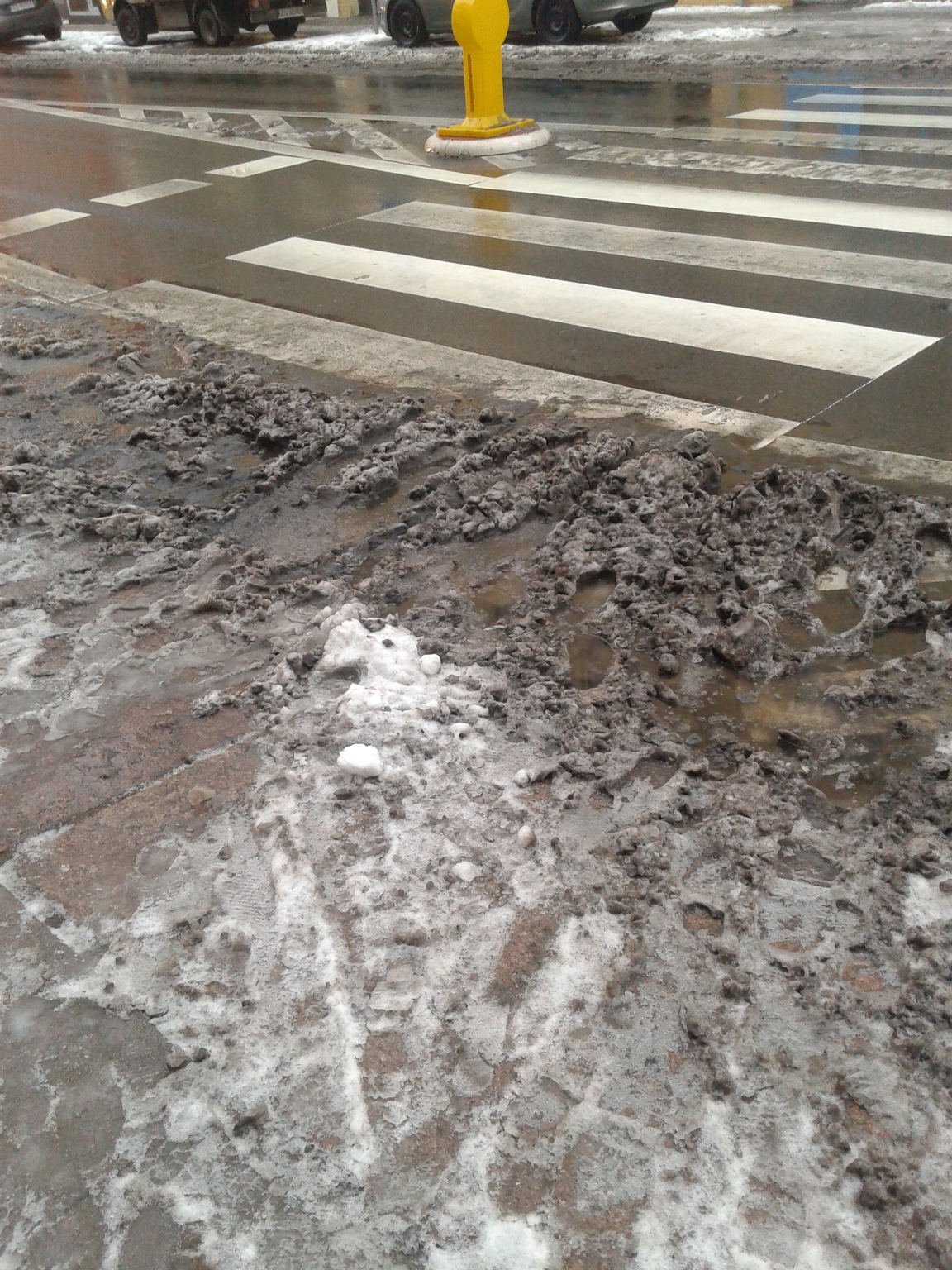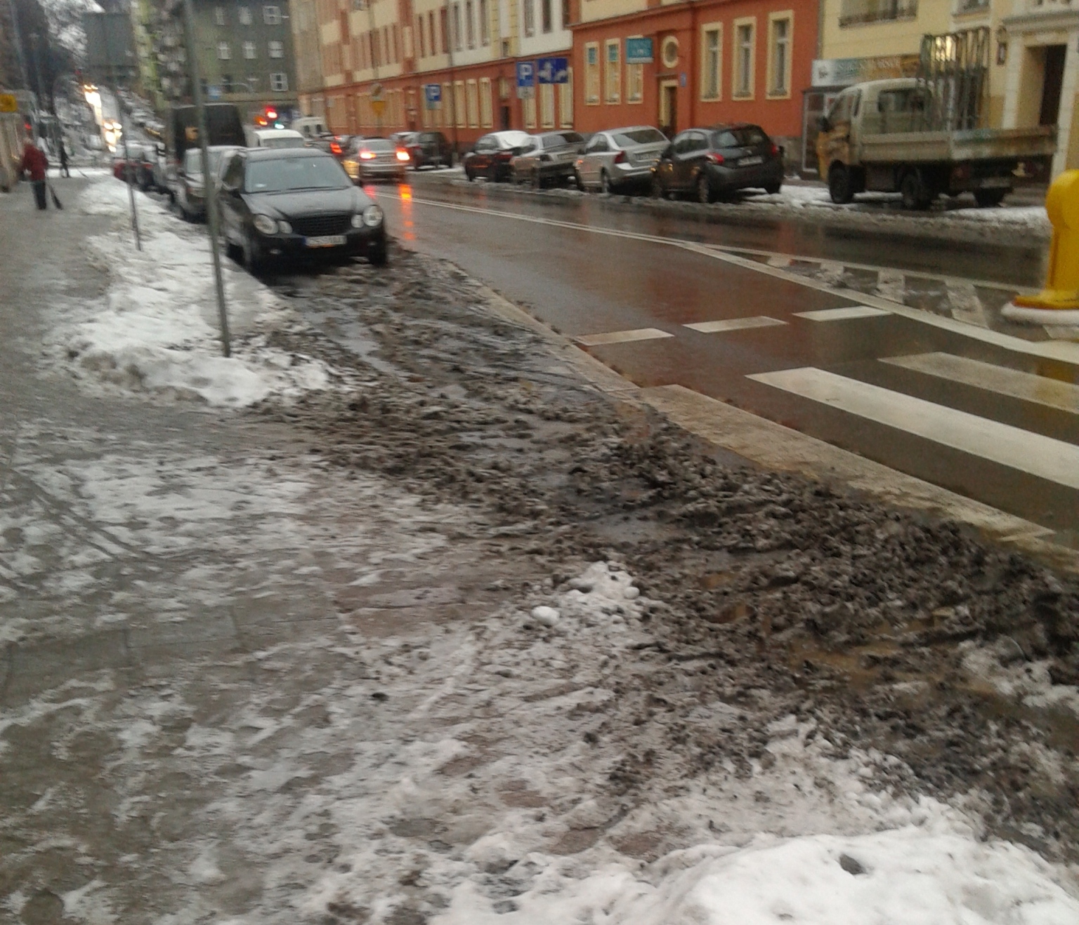 Opady śniegu w Szczecinie oznaczają zwykle duże kłopoty dla pieszych. Pługi, które oczyszczają jezdnie, przesuwają błoto pod krawężniki. Przy chodnikach i przejściach zalegają pośniegowe hałdy i tworzą się olbrzymie kałuże. ©℗