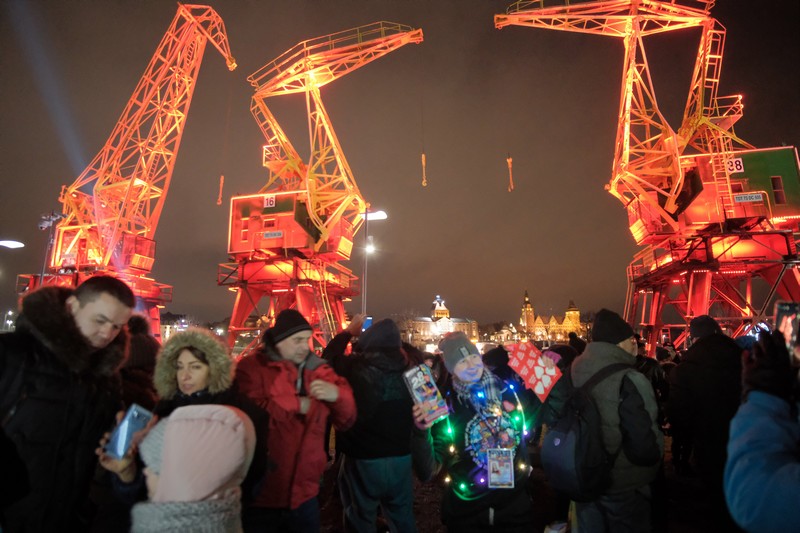 Żeglarskie światełko do nieba zakończyło 28. Finał Wielkiej Orkiestry Świątecznej Pomocy w Szczecinie. Mieszkańcy oglądali je w towarzystwie dźwigozaurów.