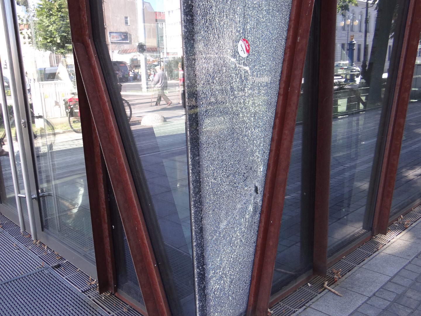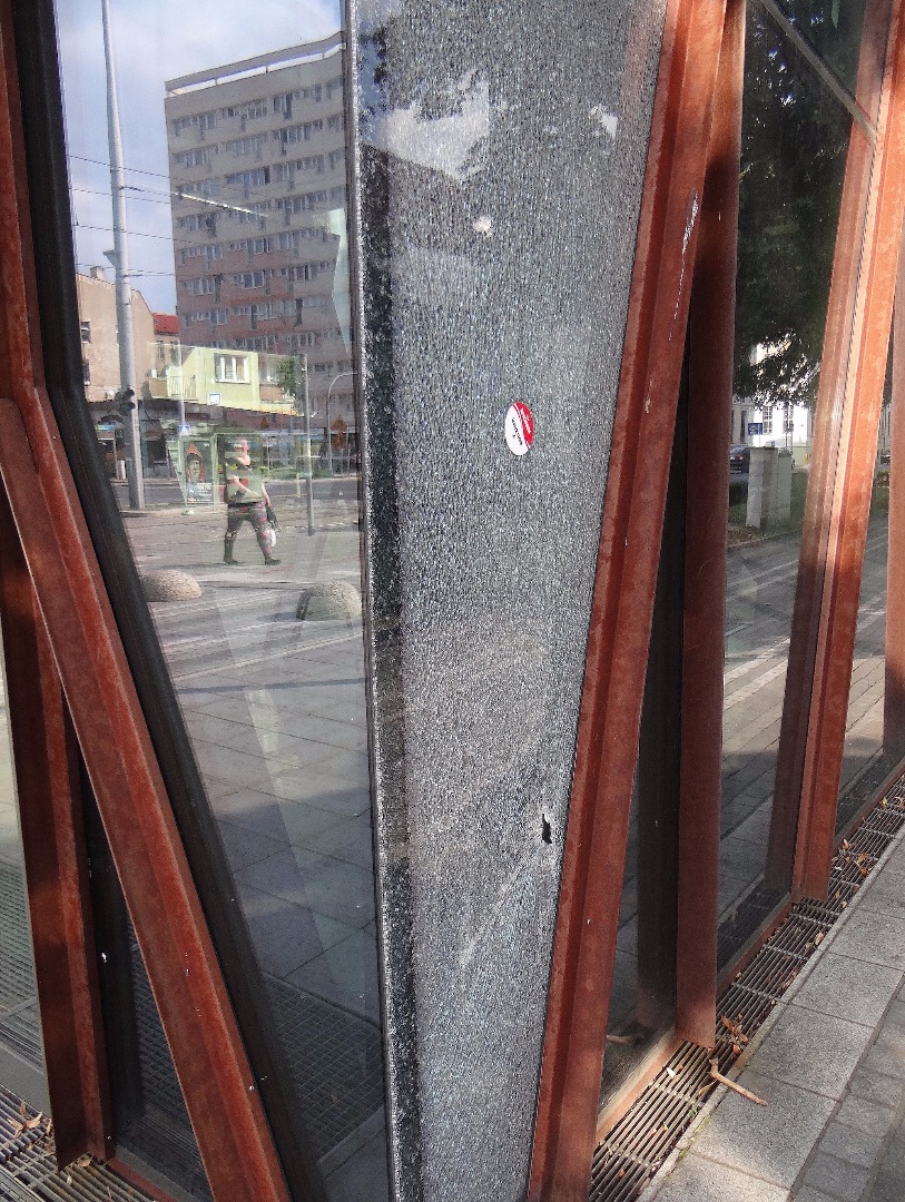 Kolejna szyba poszła w drobny mak w pawilonie, czyli w szklanej pułapce na pl. Żołnierza Polskiego w Szczecinie. Zdjęcia z początku tego miesiąca z zamkniętej na głucho konstrukcji, z której wyprowadzili się poprzedni najemcy.