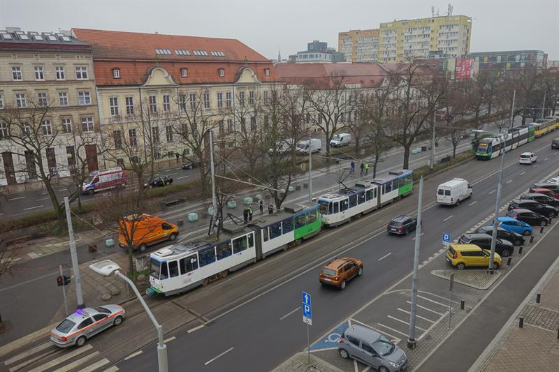 W efekcie wstrzymany został ruch tramwajów na trasie plac Żołnierza Polskiego - Filharmonia. Awaria wydarzyła się na wysokości przejścia dla pieszych w kierunku ul. Mariackiej. Na miejsce przybyła ekipa Pogotowia Technicznego, żeby naprawić urządzenia.