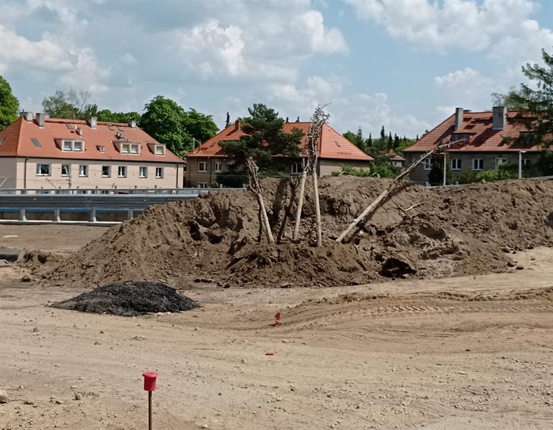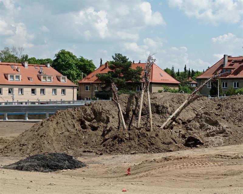 W upalny słoneczny dzień młode drzewa czekały wiele godzin na posadzenie. Leżąc w pryzmie ziemi wydobytej z wykopów. Jak pokazuje zdjęcie - w sporym dystansie do mieszanki urodzajnych gleb, którymi zgodnie ze sztuką ogrodniczą faktycznie powinny być obłożone ich korzenie. Między innymi tak wyglądają realia pielęgnacji zieleni na przebudowywanym węźle Łękno. Co z niepokojem sygnalizują redakcji kierowcy, stojący w długich korkach na al. Wojska Polskiego.